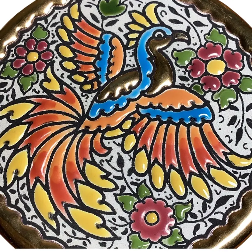 CEARCO , Spain Hangable Bird With Enamel And 24 K Gold Trim/ Accents 4” Diameter