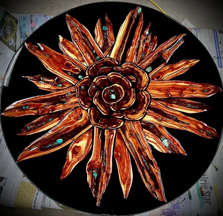 I am a woodworker and sculptress, producing fine home furnishings and fine art in the Wild, Wild West of Montana. I specialize in driftwood and epoxy resin carvings, utilizing semiprecious stone inlays to create art you can touch and one of a kind furniture. Many of my pieces also feature the amazing work of my partner, a master blacksmith and metal artist. Our works can also be viewed on the website at Twisted Tree Forge. https://twistedtreeforge.com/