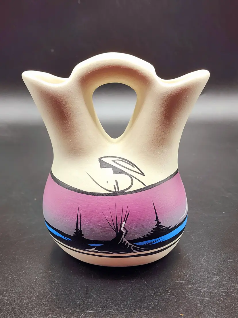 Cedar Mesa Native Pottery Vase, 5 1/2" tall, Signed.