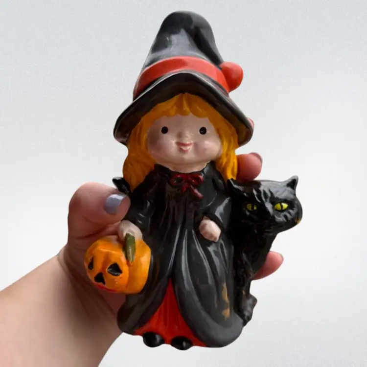 Super adorable ceramic with and black cat made by RB Japan. This piece is in great condition for its age and stands about 6.75in tall.