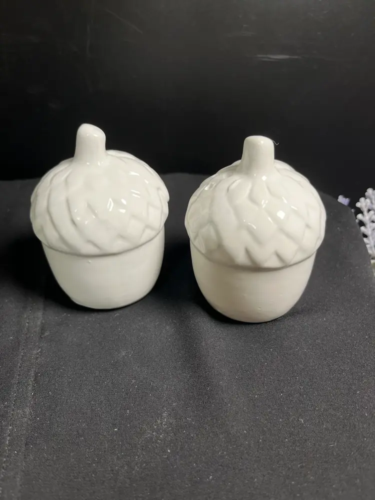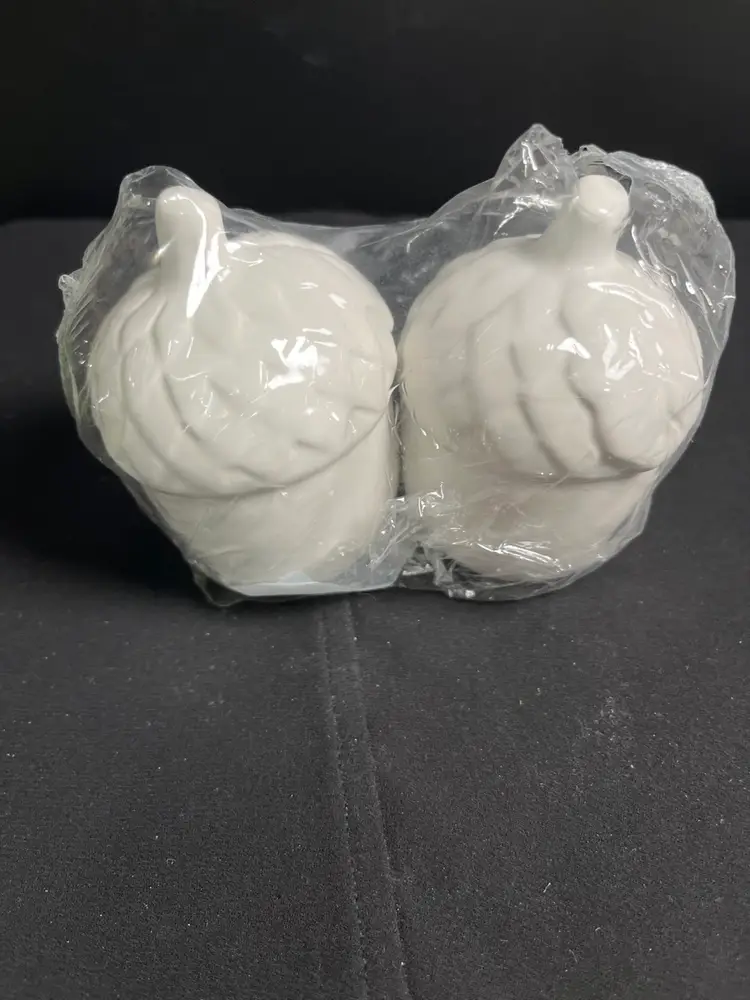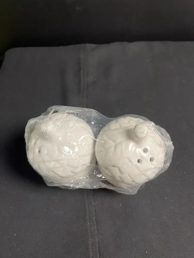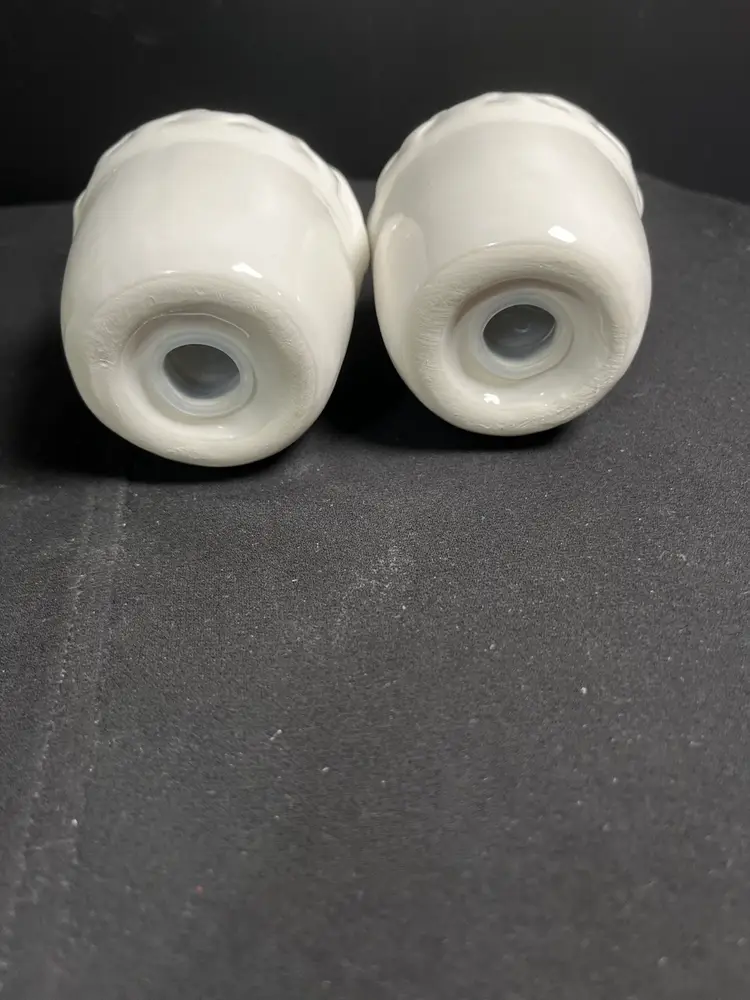 One has 3 holes, the other 2. These were never opened from original packaging. However, I did a no no and unpackaged it in order to see them better. See pics. The 2 hole shaker has a flea bite near one of the holes. Otherwise these are in good condition. Each measures approx 3.5"H, 2.5" W, both stoppers are intact. Together pre shipping wt is approx 6 Oz