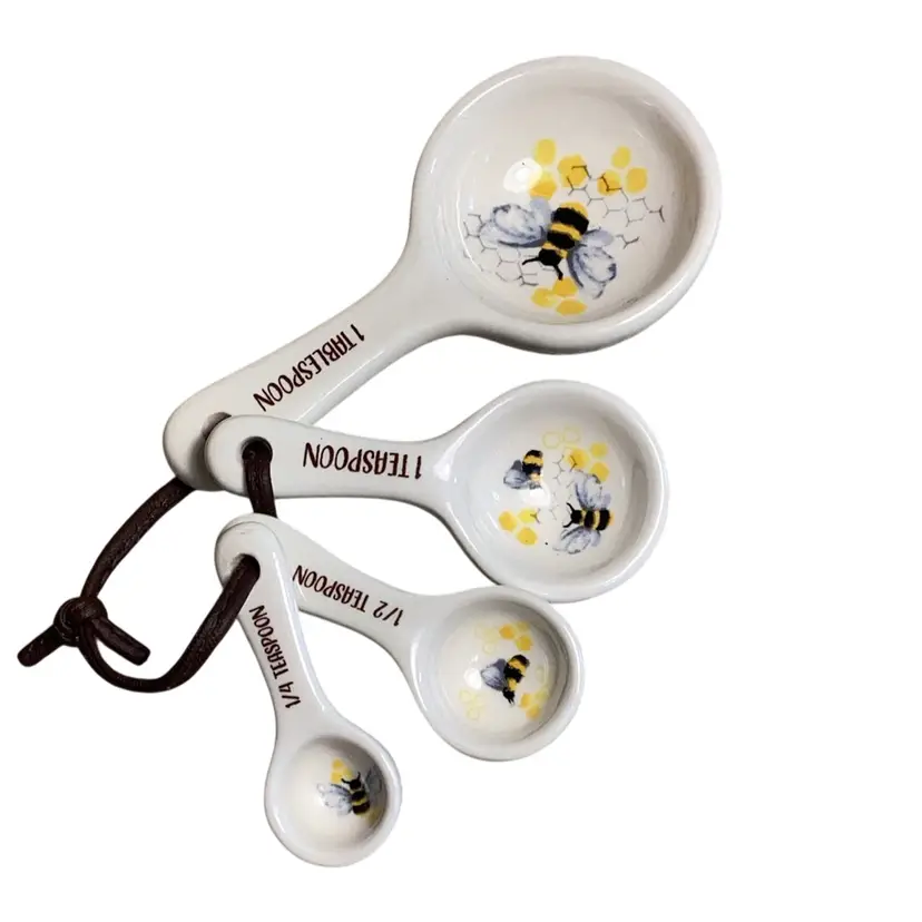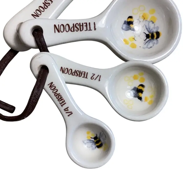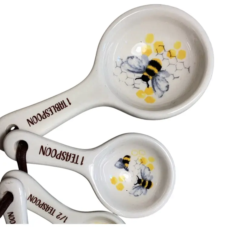 Ceramic Bee Measuring Spoons , lg 4.25โ€ L Has One Small Scuff On Back And Side