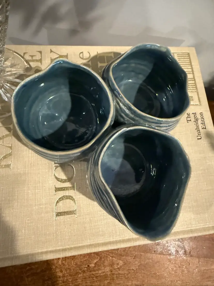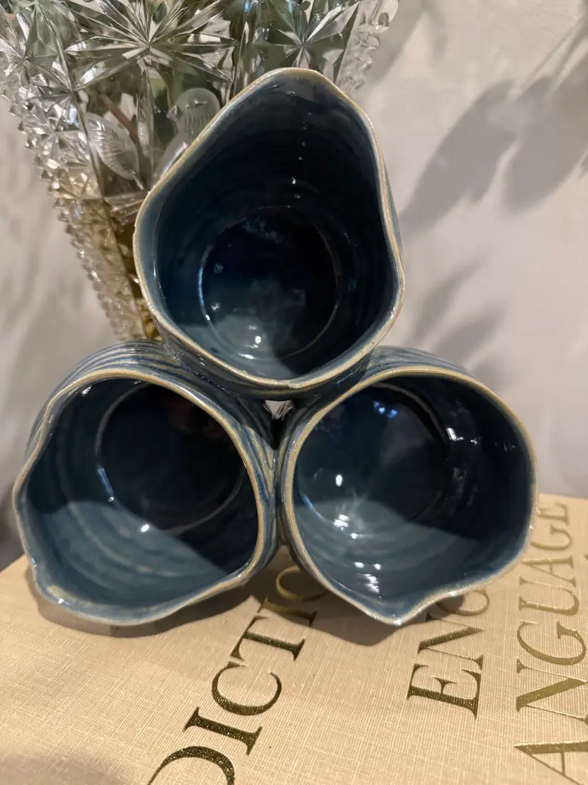 Unique ceramic succulent planter featuring three attached pots, perfect for creating a bohemian-inspired display. These pots are designed to hold multiple small succulents or cacti, adding a touch of natural charm to any space. The rich blue glaze and textured finish enhance its artisanal appeal.