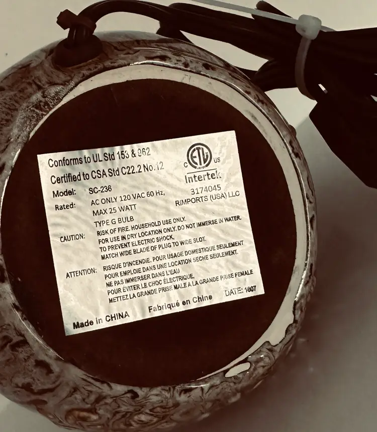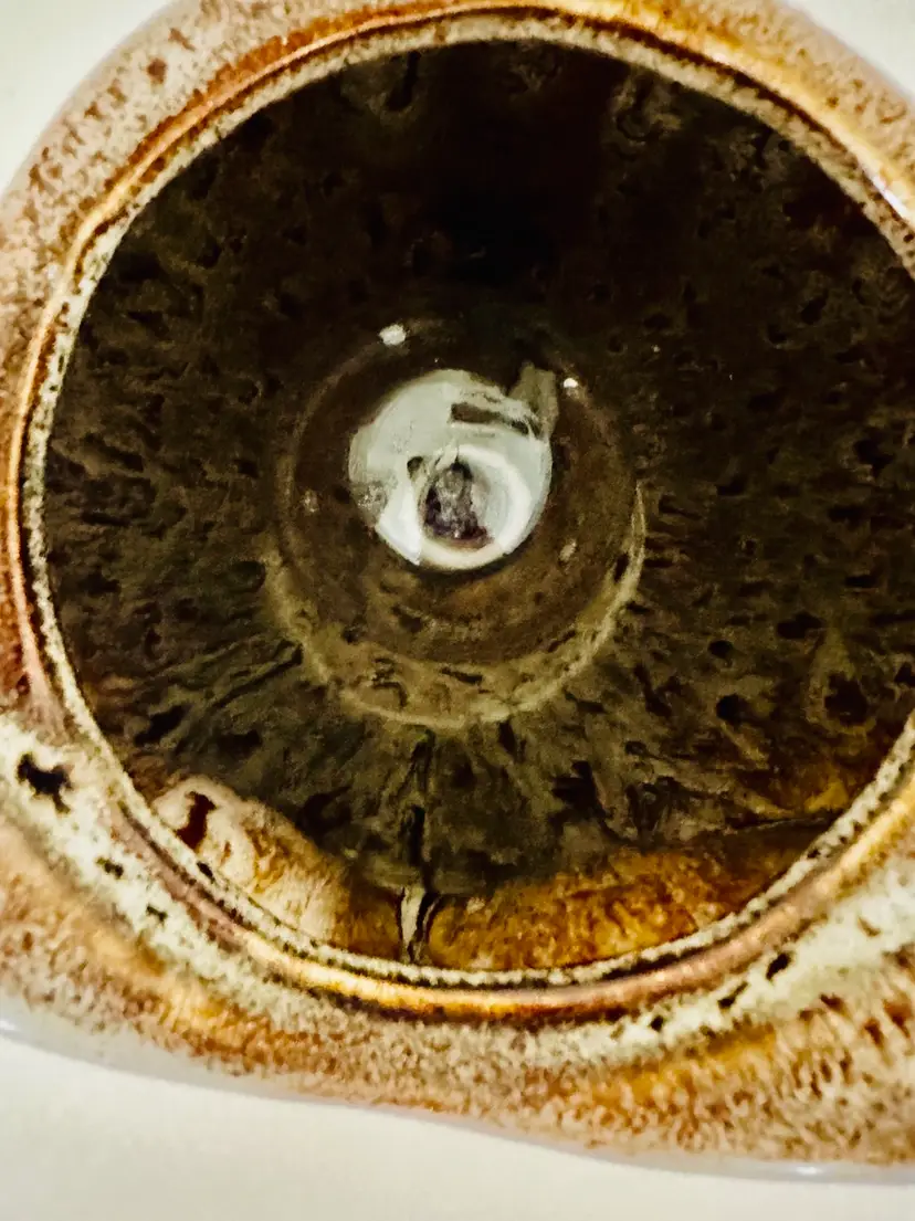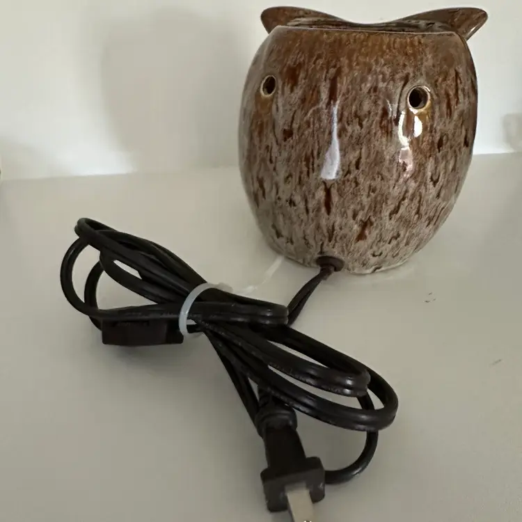 This ceramic owl lamp is a charming addition to any home decor. The lamp features a shiny finish and multicolor design that adds a touch of whimsy to your room. Electric power source -- wired plug with on/off switch -- bulb included. The incandescent lighting technology ensures a warm and cozy glow, making it ideal for night time use. This original piece is made of high-quality ceramic and is perfect for collectors or those who appreciate unique decor. Add a touch of vintage charm to your home with this one-of-a-kind night light. Owl collectors, this is especially for you! Approx 5 1/2" high.