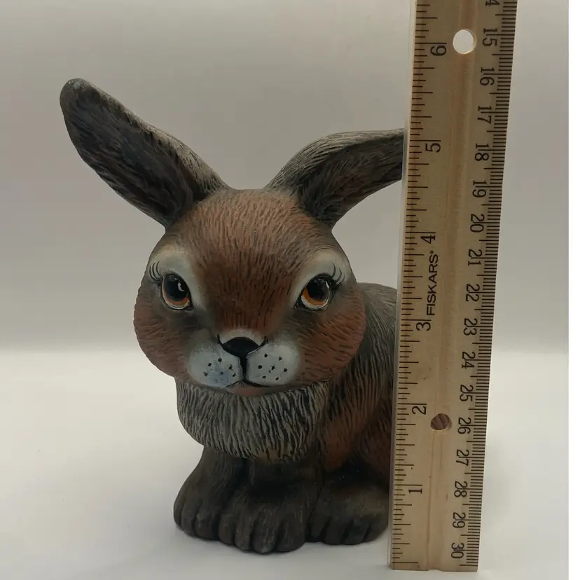 This bunny needs to hop on home to you. 5 1/2” tall, 5” wide. In good condition with no breaks. So adorable… it needs a garden to sit in.