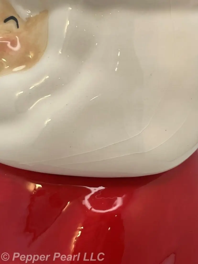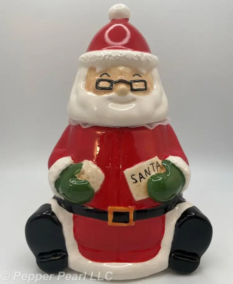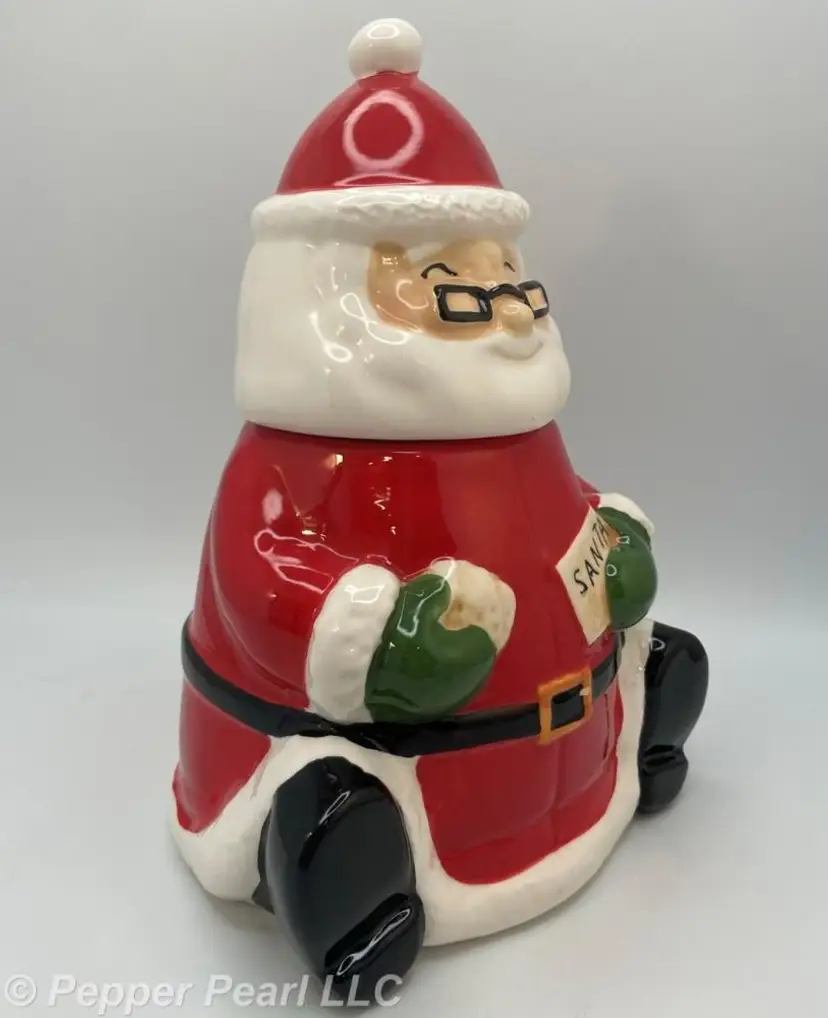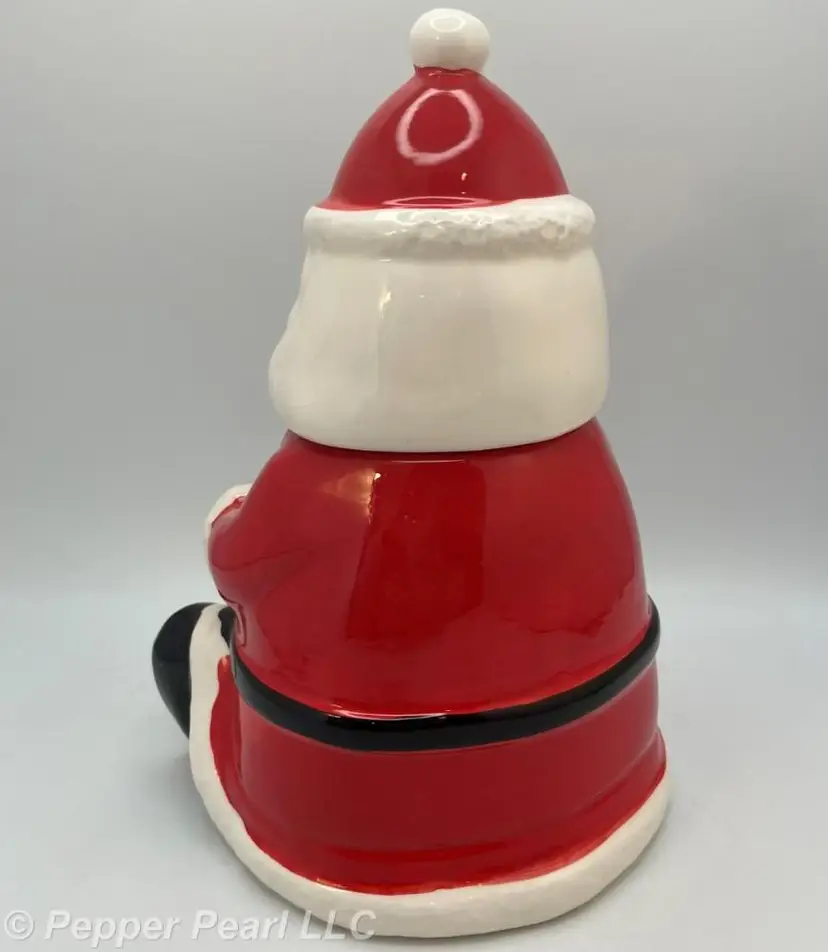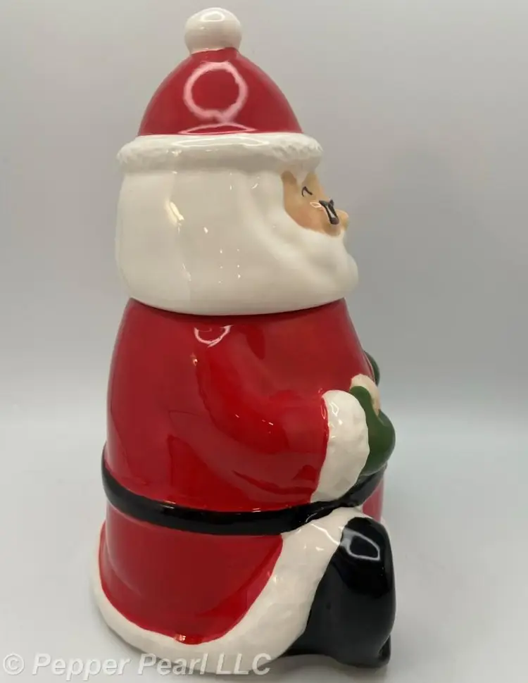 Trim A Home Santa Ceramic Cookie Jar, never used. Kmart Old Stock Measures 7.32" Long X 6.38" Wide X 10.79" High. Jar is 5.5" deep. Hand wash, Made in China Crazing present, no chips or cracks, shelf wear on bottom