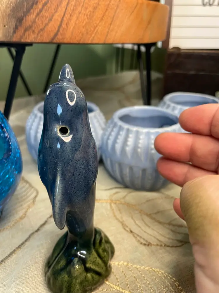 This dolphin is good condition. There is a small hole that I’m not sure what it is for but it’s so cute. 5” No chips or cracks