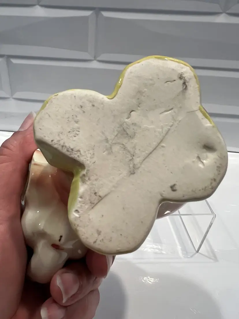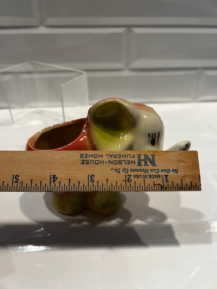 Possibly made by Shawnee? USA Approx. 4 inches tall. 5 inches wide. Some crazing due to its vintage age - still a very cute little planter