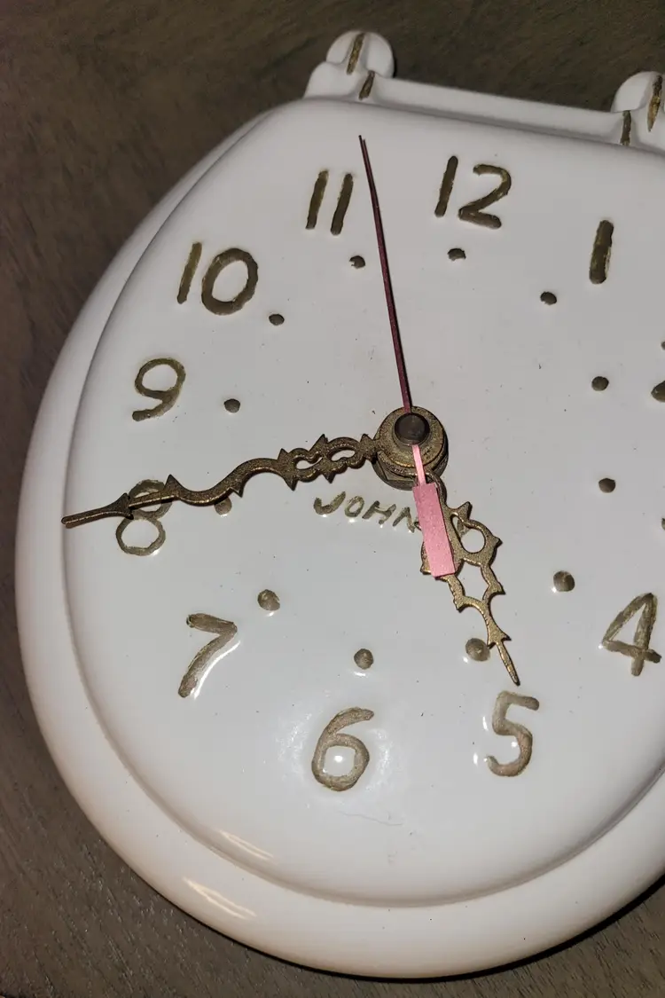 Measures 8"x6.5" Made of ceramic. Light rusting on clock hands. No cracks or chips. Works & runs off 1 C battery. *batteries not included