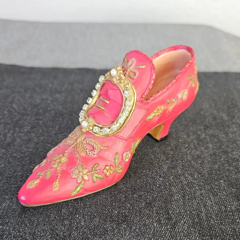 Add this timeless floral design with stunning rhinestone buckle and pearl accents to your ceramic shoe collection. Part of the Nostalgia collection by Popular Imports, vintage 1999. Pre-owned, very good condition and well kept. Measures appx 4" x 2" x 1.5" No box.