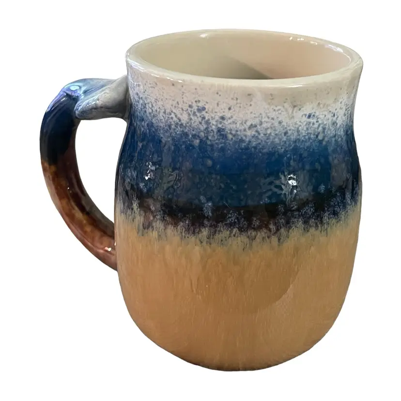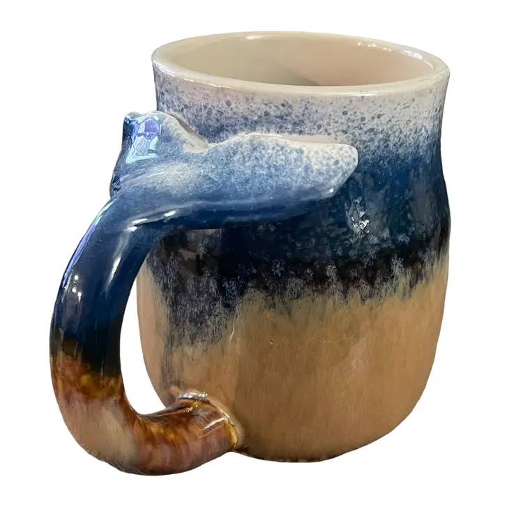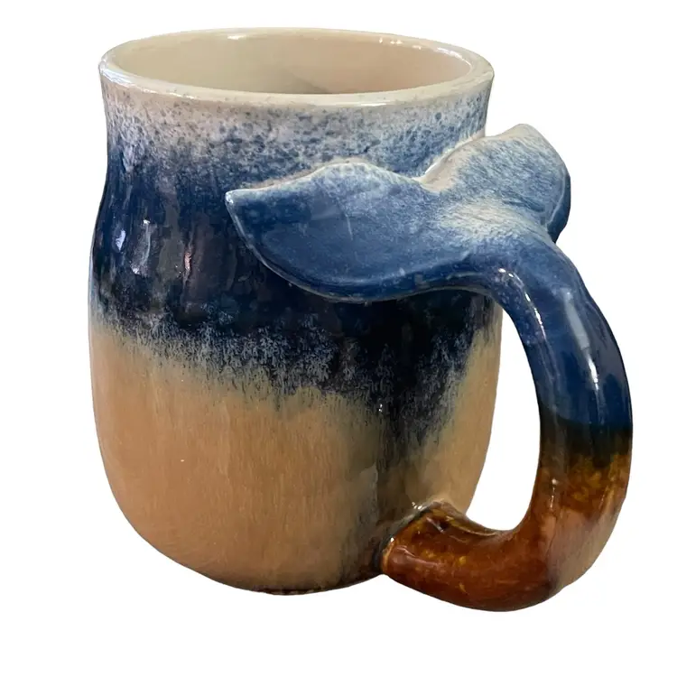 Large ceramic mug with a beautiful glaze and whale tail handle.