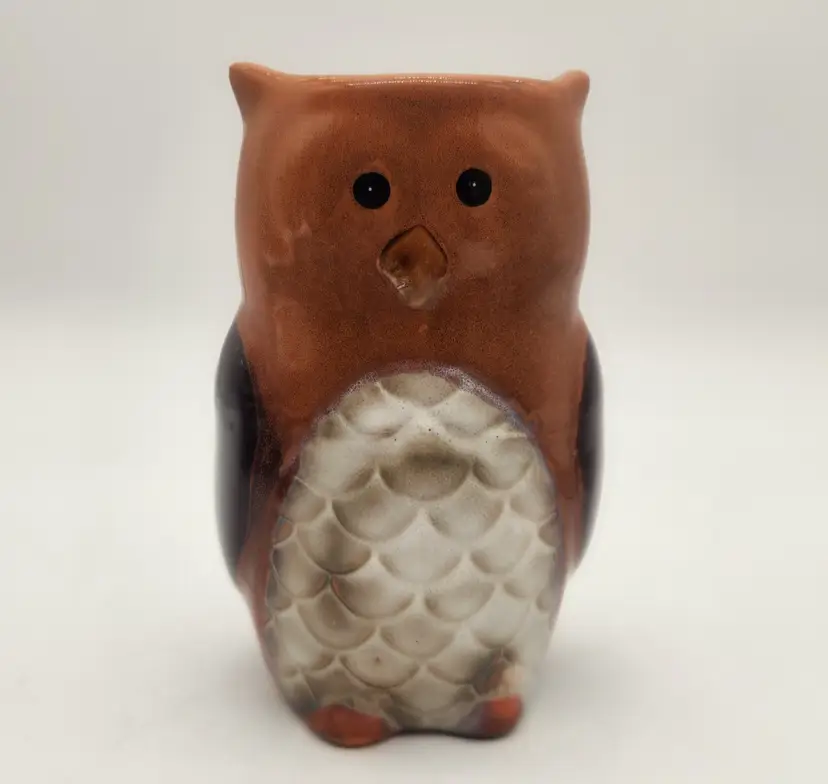 This sweet little ceramic owl is ready to add some glow to your fall decor: he is hiding a candle inside! The candle is scented. Measurements: 6" tall, 4" wide Excellent Condition: the candle was never lit but it may have been exposed to heat. Keywords: owl decor, candle holder, ceramic art, rustic home, farmhouse style, table centerpiece, mantel decor, gift idea, whimsical, cozy, autumn decor, seasonal