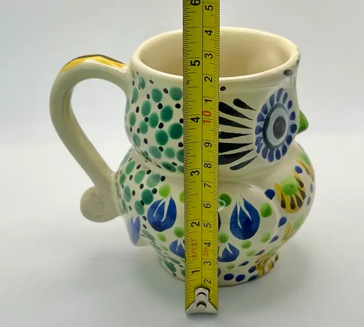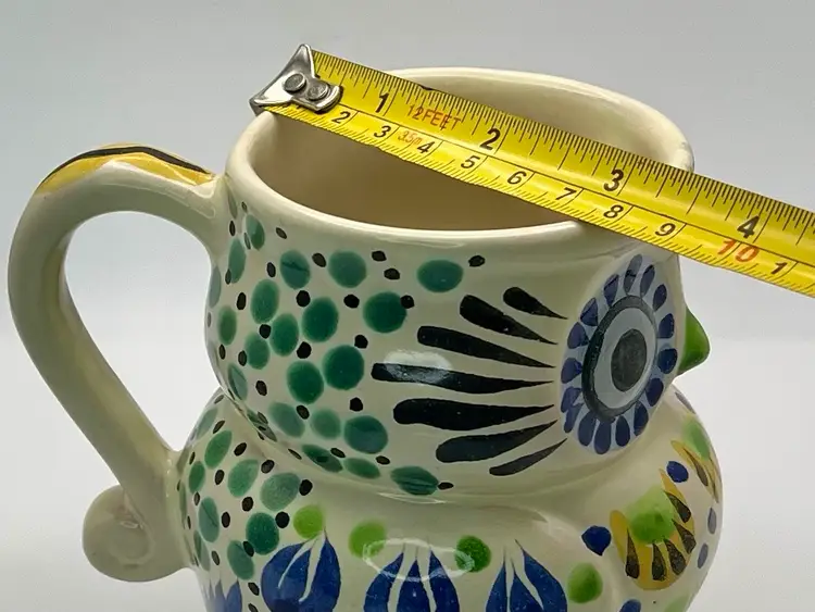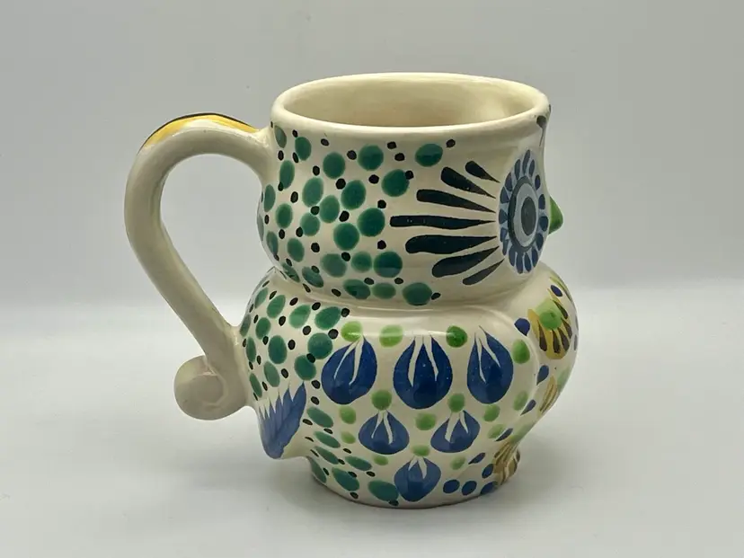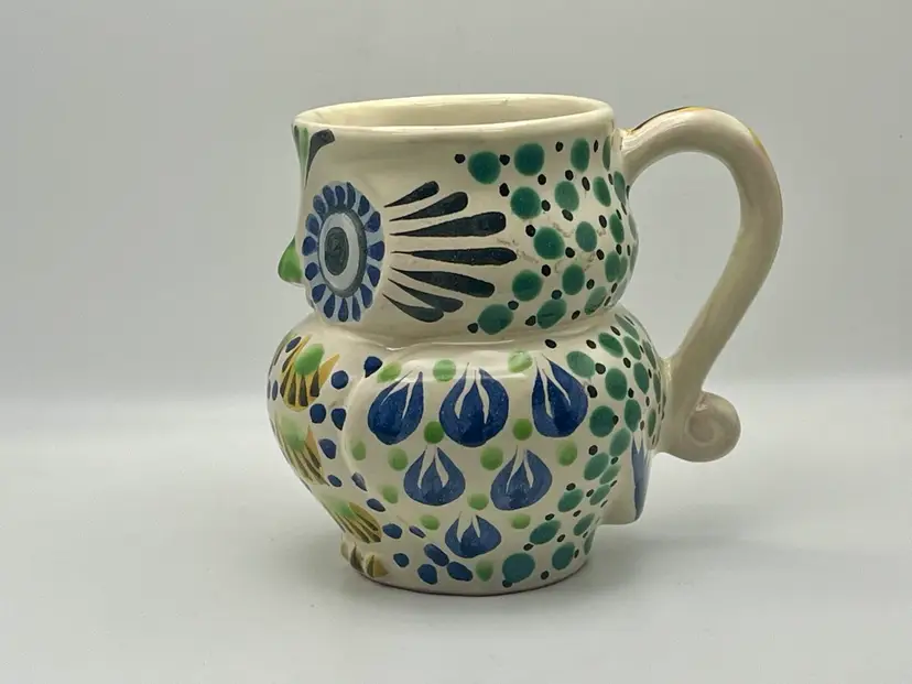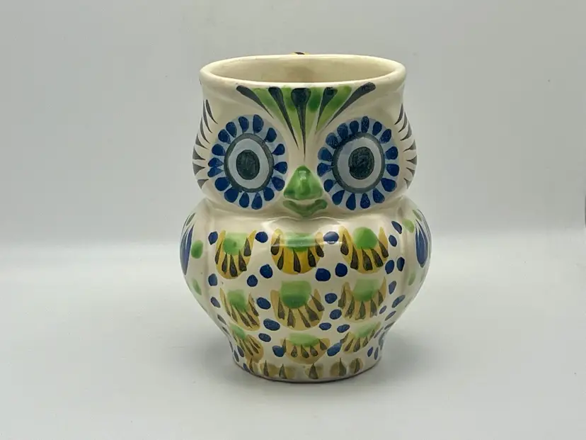 Mexican pottery owl mug. Hand painted, signed GTO. Approximately 5.5” tall. Excellent condition no chips or cracks.
