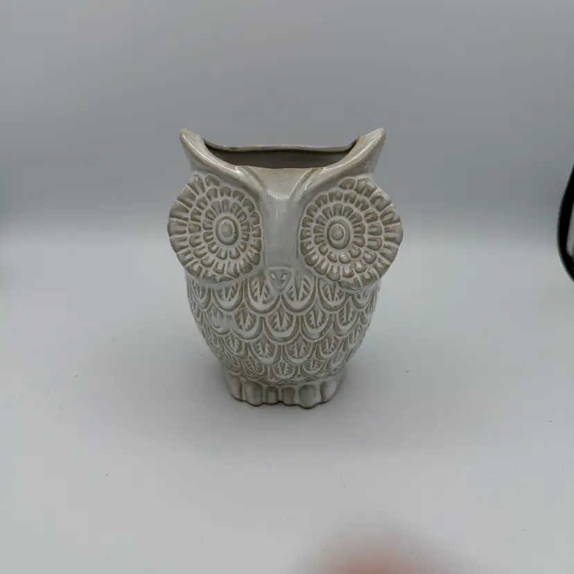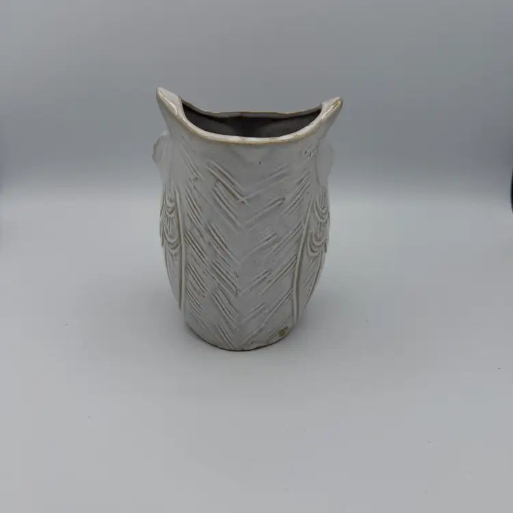 Ceramic Owl Planter or Utensil Holder. Gray Glaze. No Chips/Cracks. 5 1/2" H X 4" W.