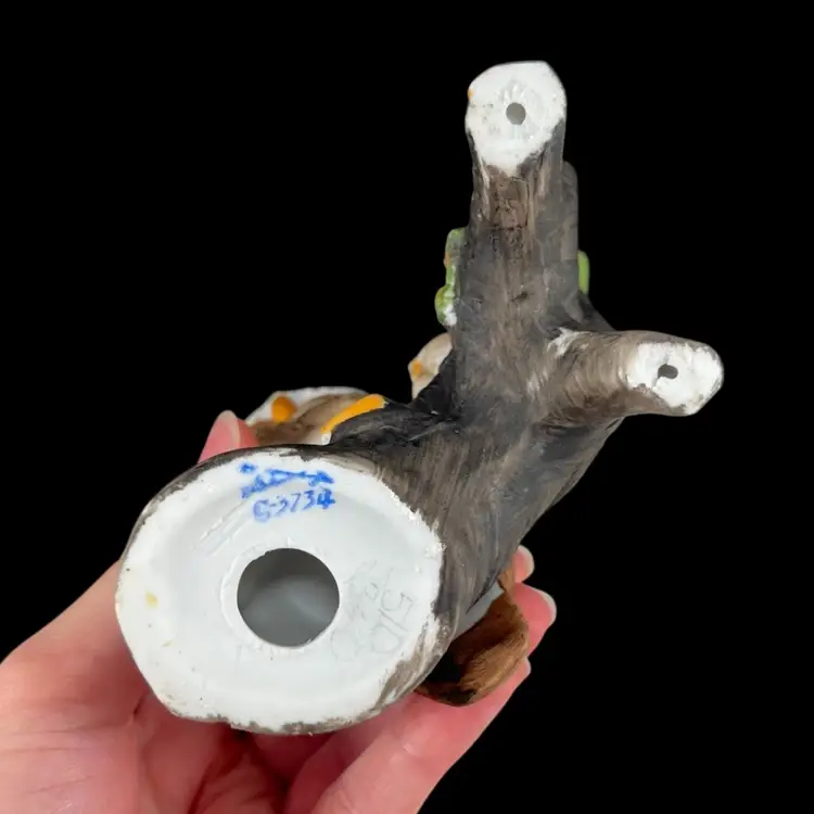 Approximately 4” x 4” x 2.5”. No chips or cracks. Some spots where paint is thinner/not covering white ceramic.