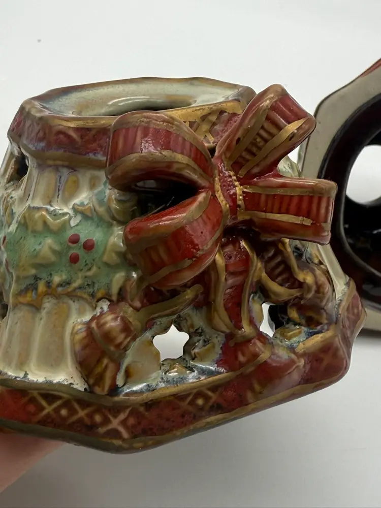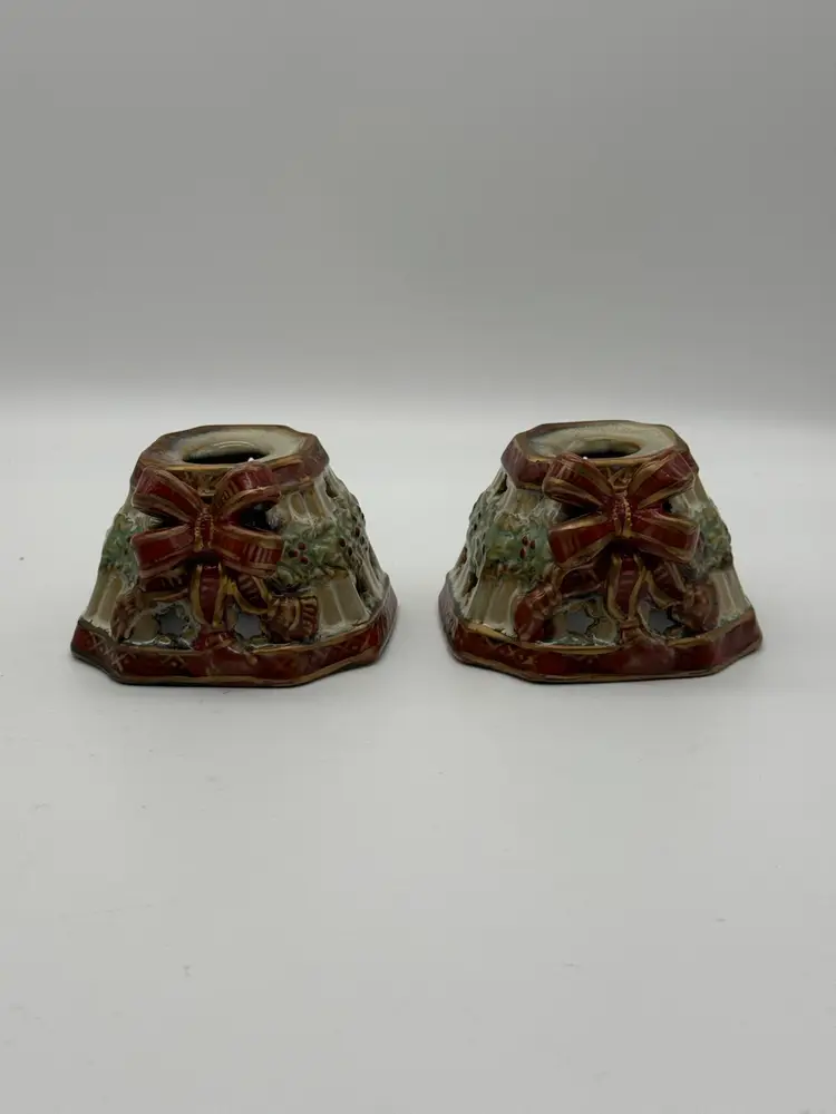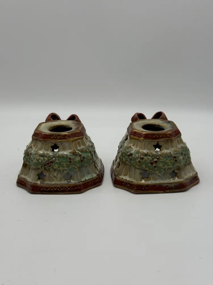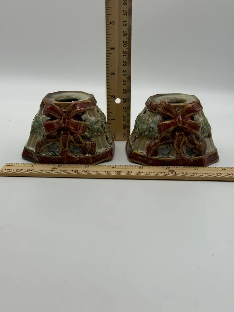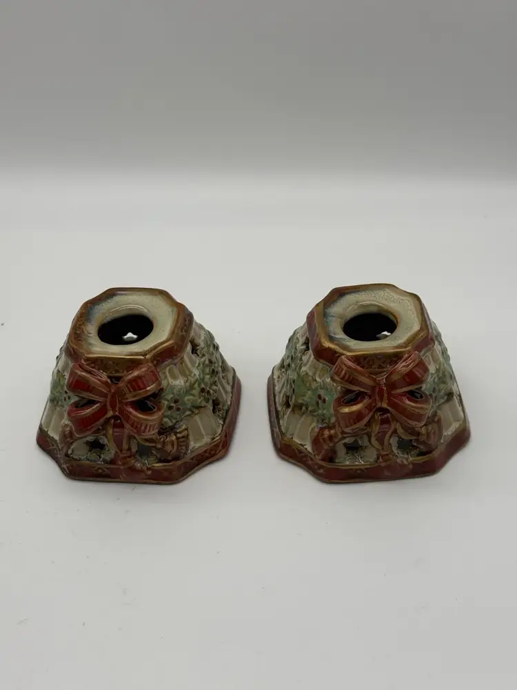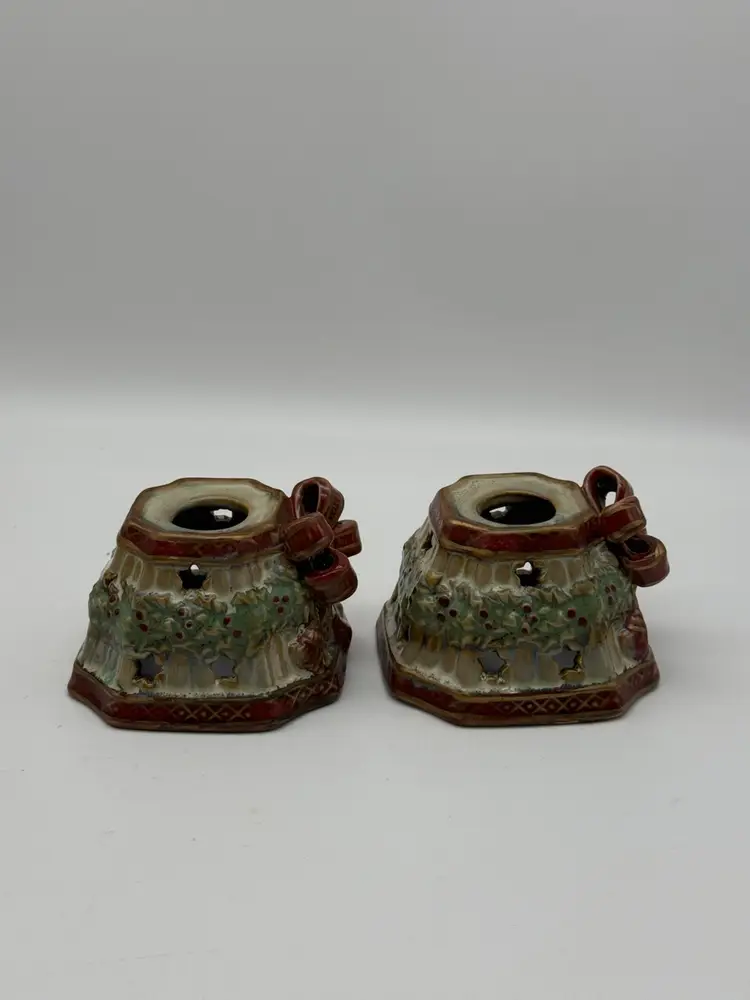 Ceramic Pair Of Christmas Holiday Candle Holders