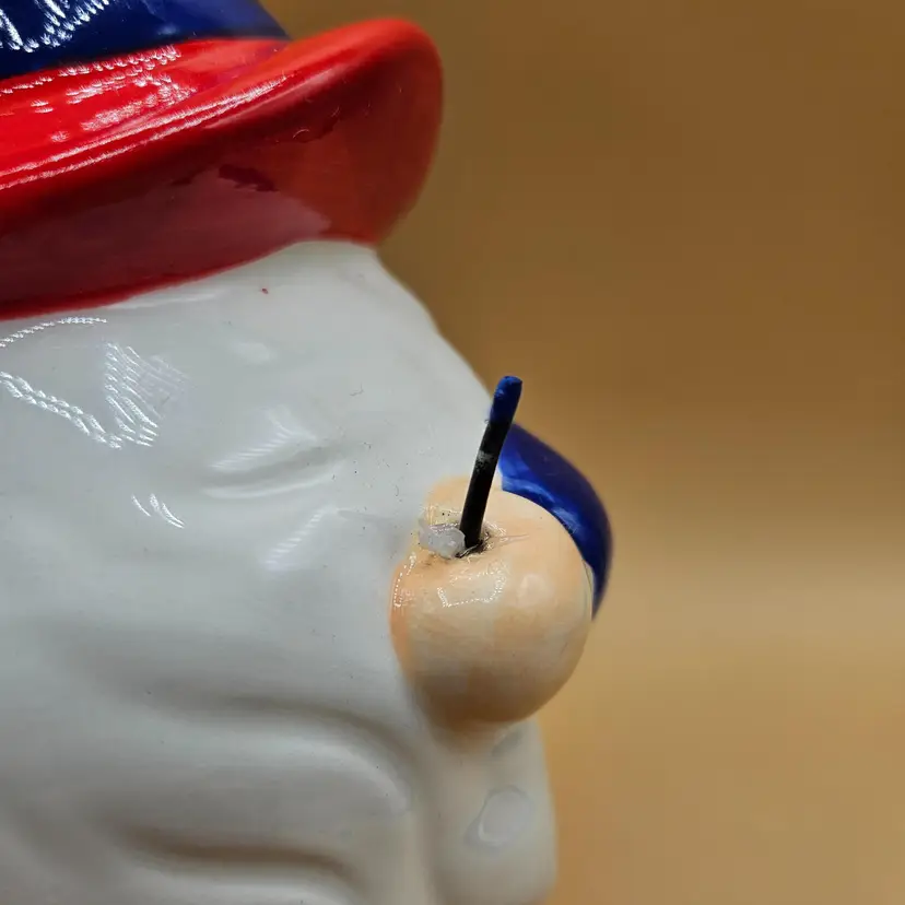 SEE PICTURES, there is a metal stem in his hand, but whatever was there is missing now, otherwise in excellent used condition no chips cracks or repairs.