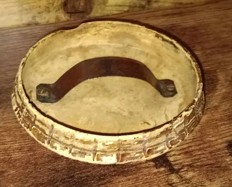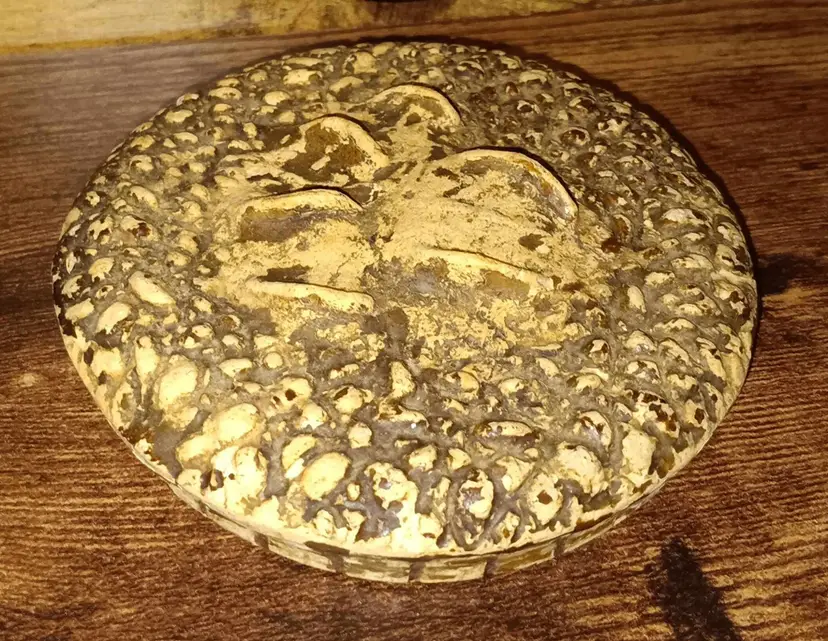Ceramic paw press for baking with great design with paw print and texture. Metal handle. In good condition with no damages. It measures 4.5 inches across.
