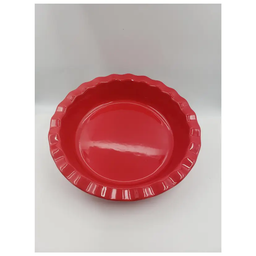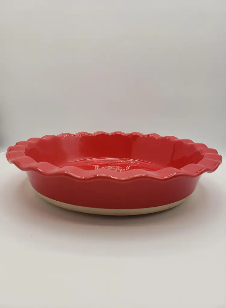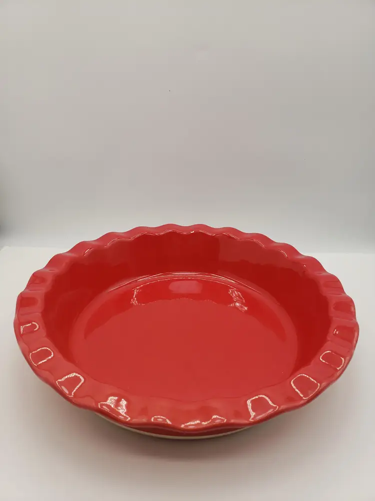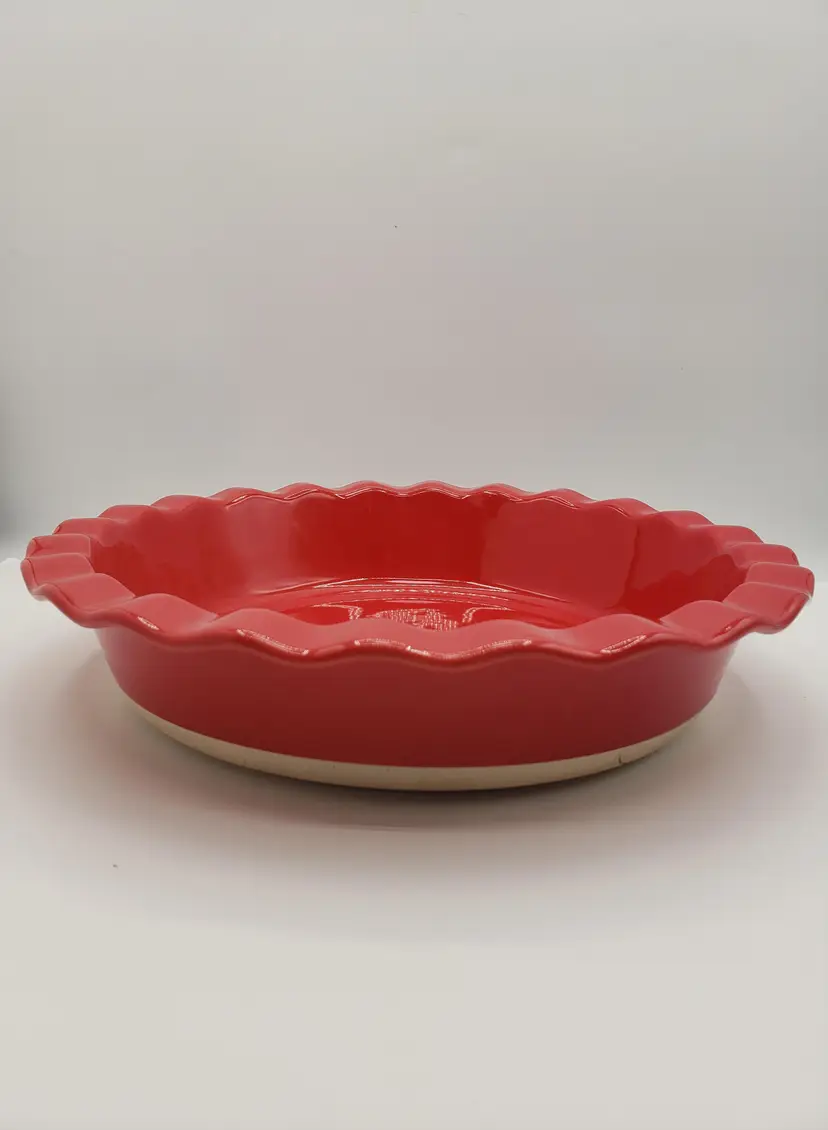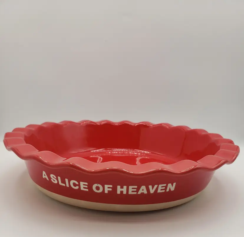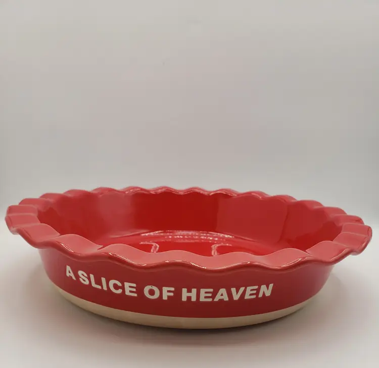 Ceramic Pie Plate Dish Pan Quiche Baking Red Smart Home 10.75" Slice Of Heaven. This beautiful, hard to find dish measures about 10.75" diameter and 2.5" deep. Made by Smart Home, essentials for living. Says "A Slice of Heaven" on the front. Light wear. No cracks.