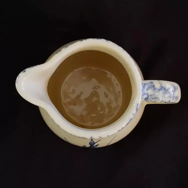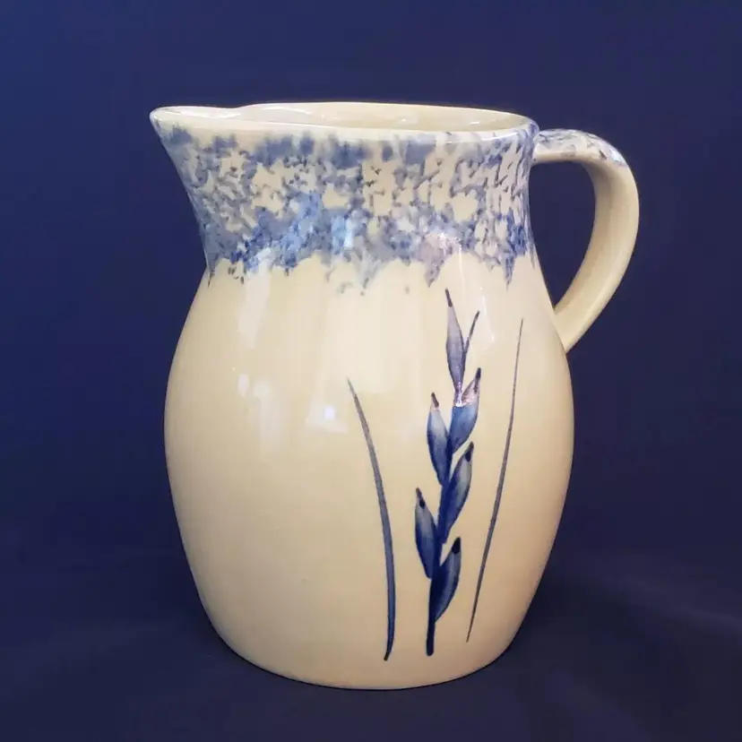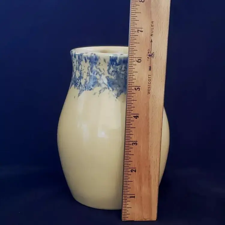 Vintage Pitcher Robinson Ransbottom Blue Wheat Spongeware Roseville USA 6" Tall approximately. Used condition with crazing, dirt, stains, etc. Please view all the photos and read the entire item description and please ask any questions prior to purchase when possible.