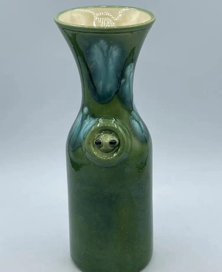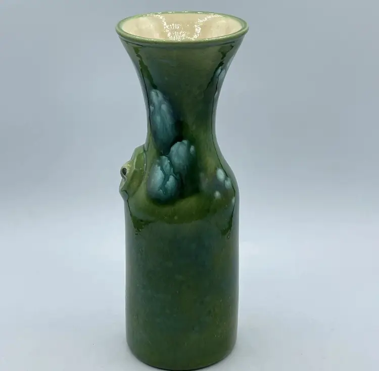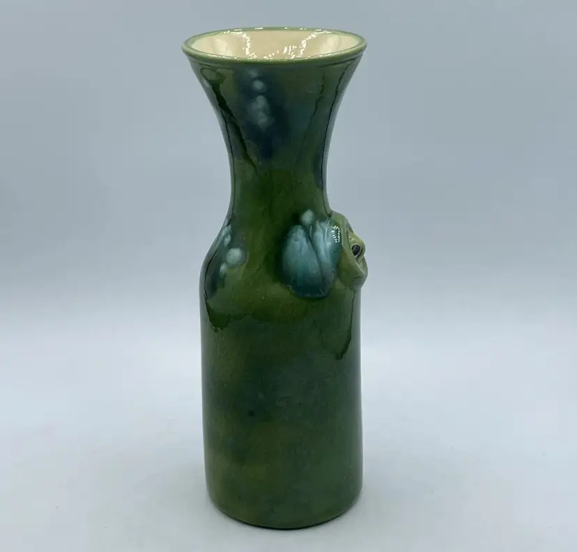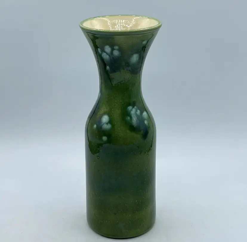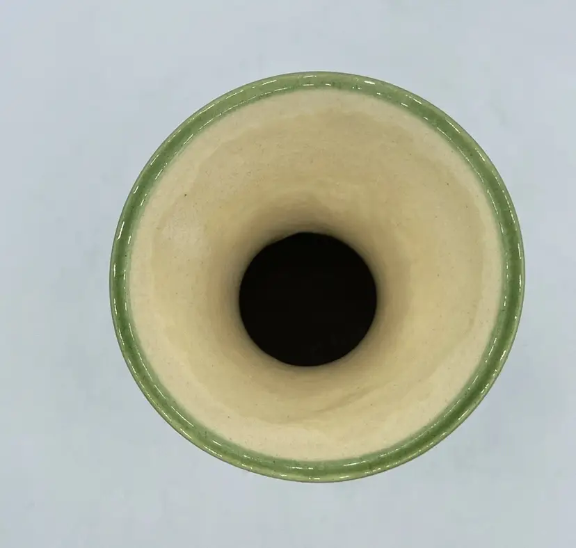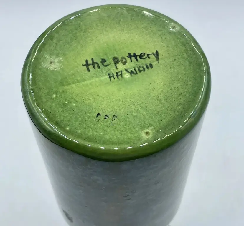 Vase is marked on the bottom as The Pottery Hawaii. Condition is used but in good condition. Does not have any chips or cracks. Measures approximately 8 1/4 inches tall and 3 inches wide at the rim of vase.