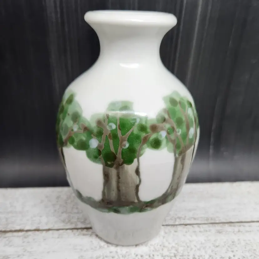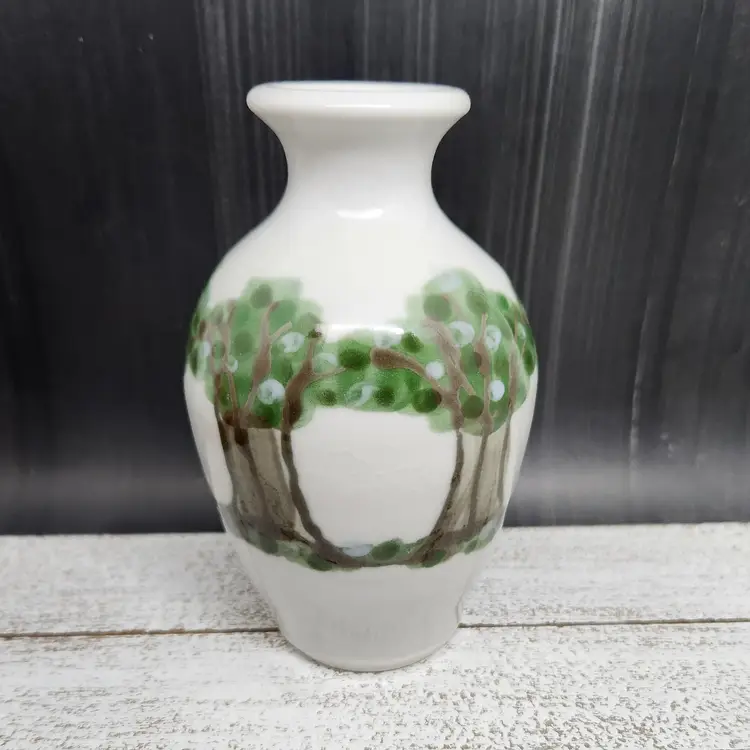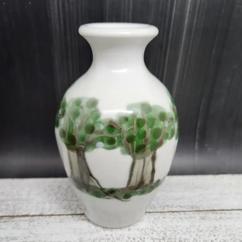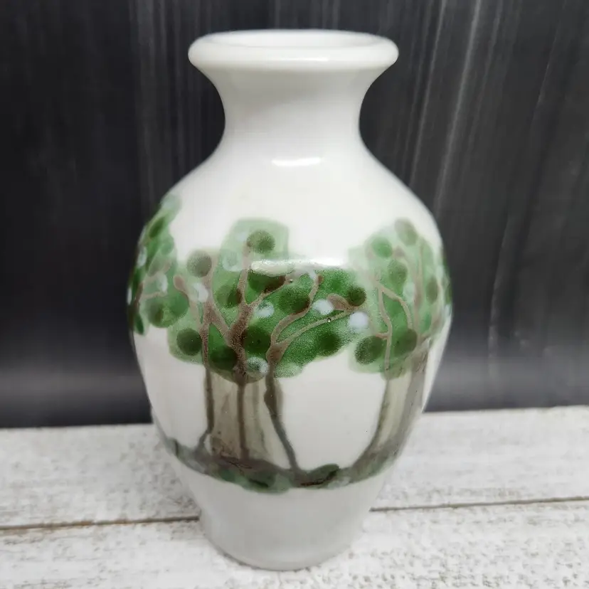 This vase is about 5" high x about 3.5" in diameter. It weighs about 12 oz.