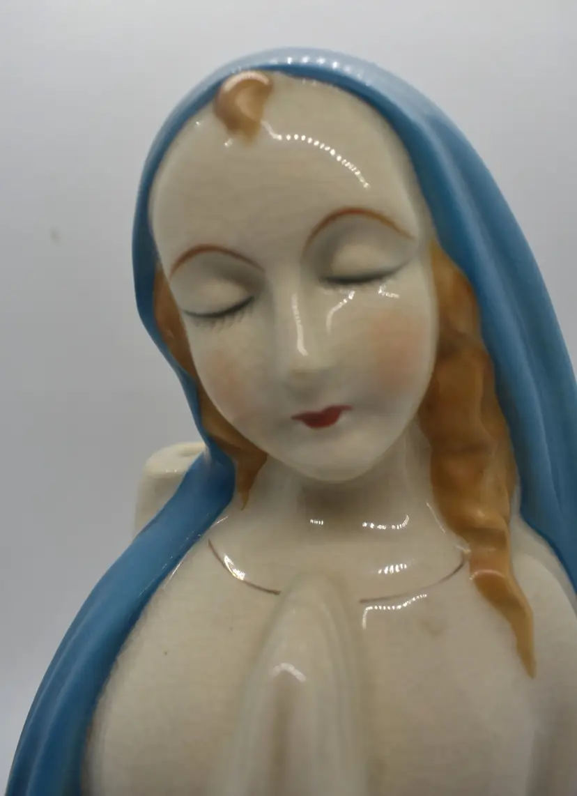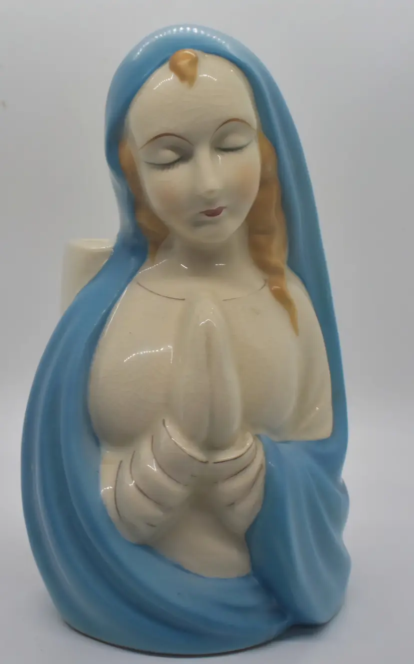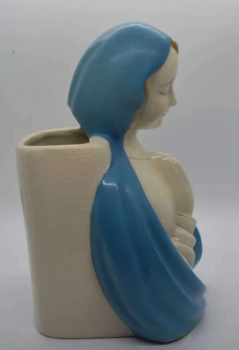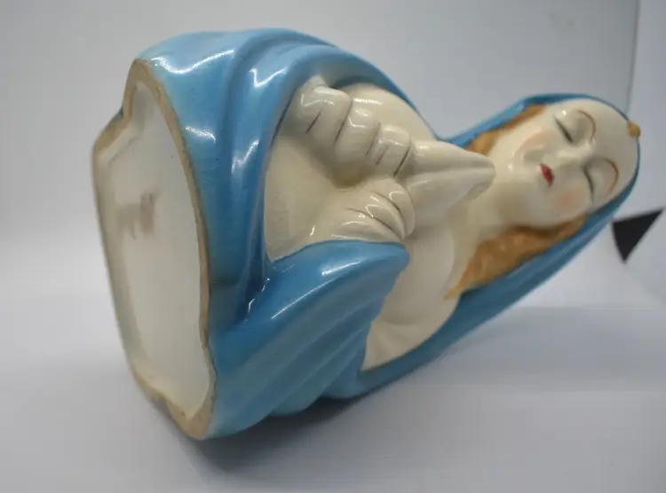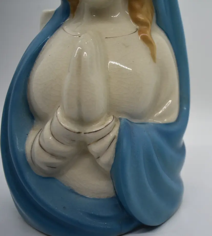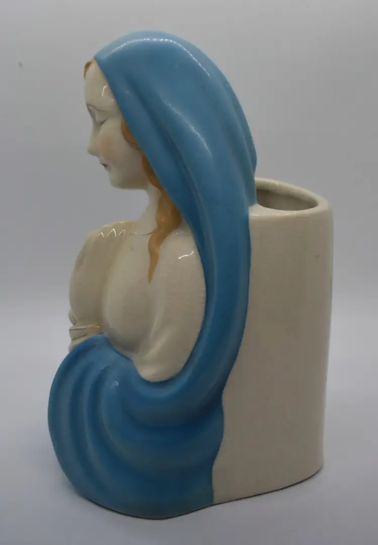 This beautiful ceramic planter features a praying Madonna figure, making it a wonderful addition to any collection of religious icons. Handcrafted in Japan, this mid-century piece is a testament to the skill and dedication of Japanese artisans. The planter is made from high-quality materials and is in excellent condition, ready to be displayed in your home or office. This piece is in very good condition but it does have some crazing.