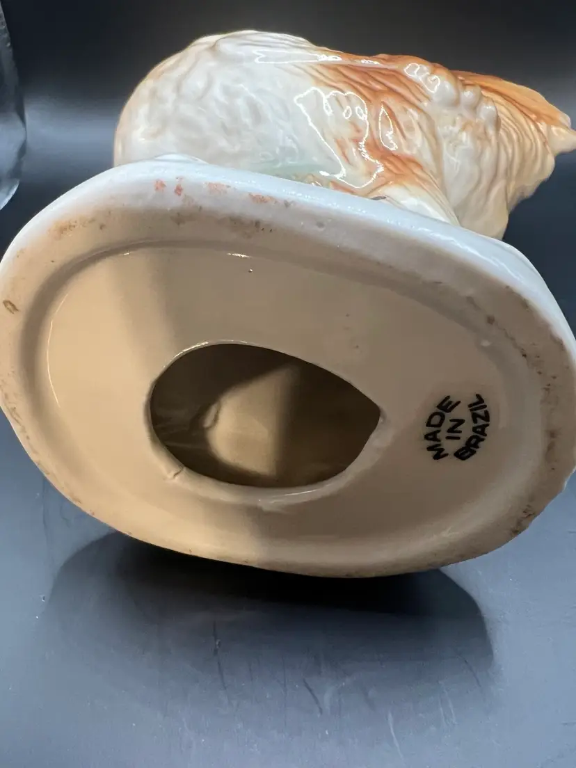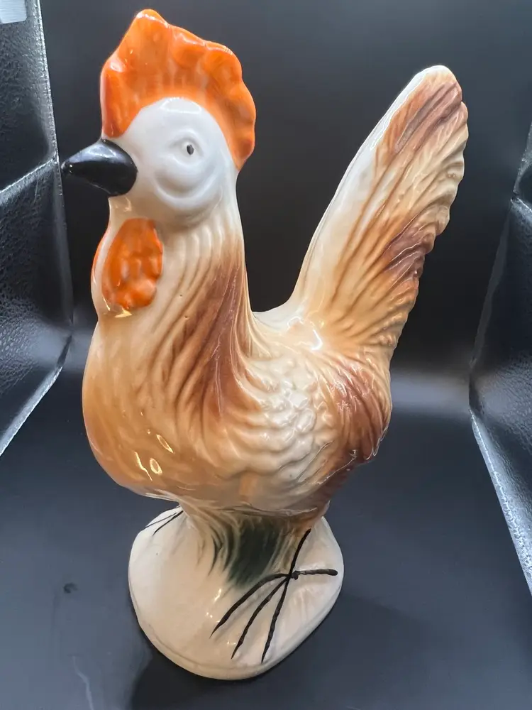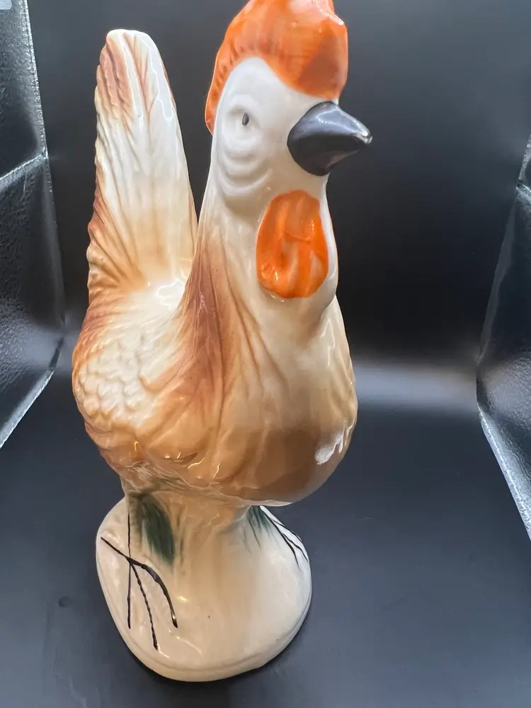 Ceramic rooster figurine made in Brazil 8 x1/2 x 51/2 wide no chips or cracks , orange and brown