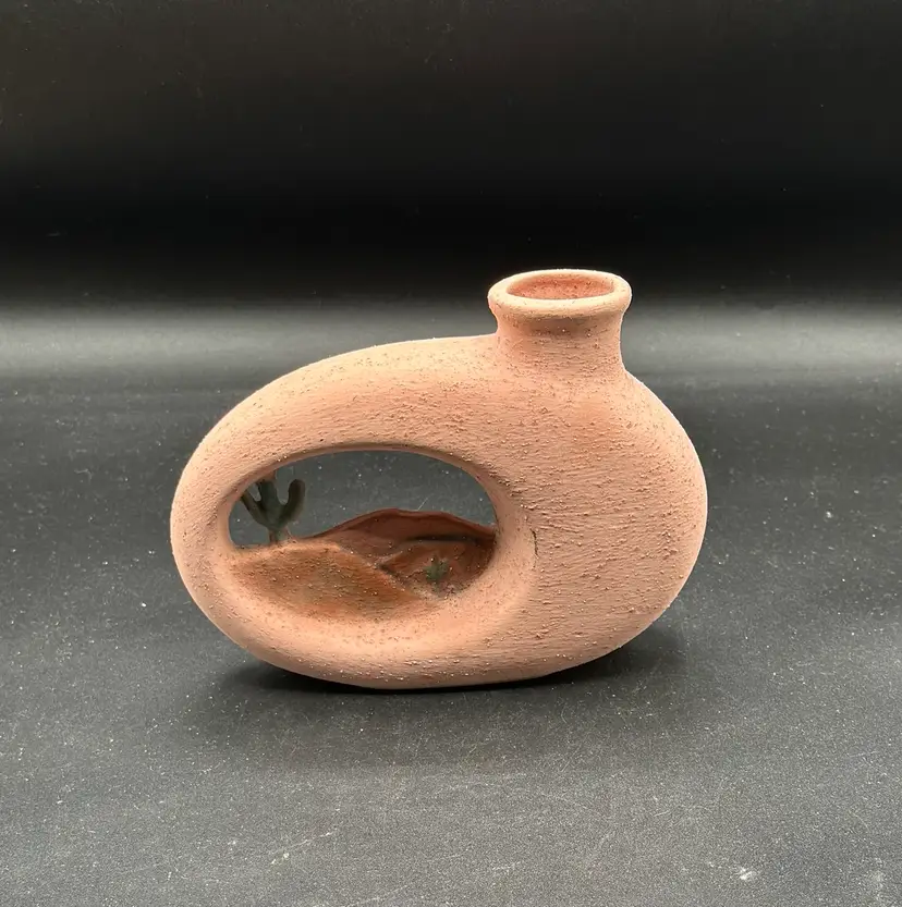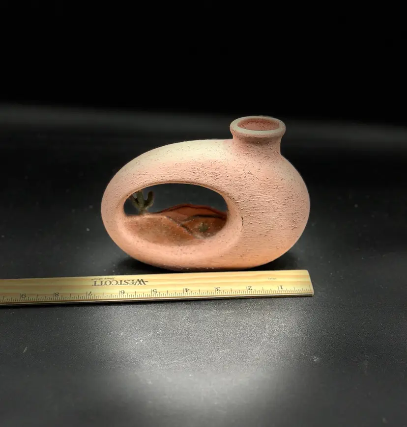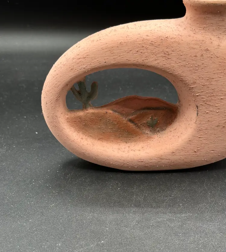 Ceramic Southwest 3D Design Vase Jug Hand Painted Signed Textured 6.5" x 5"