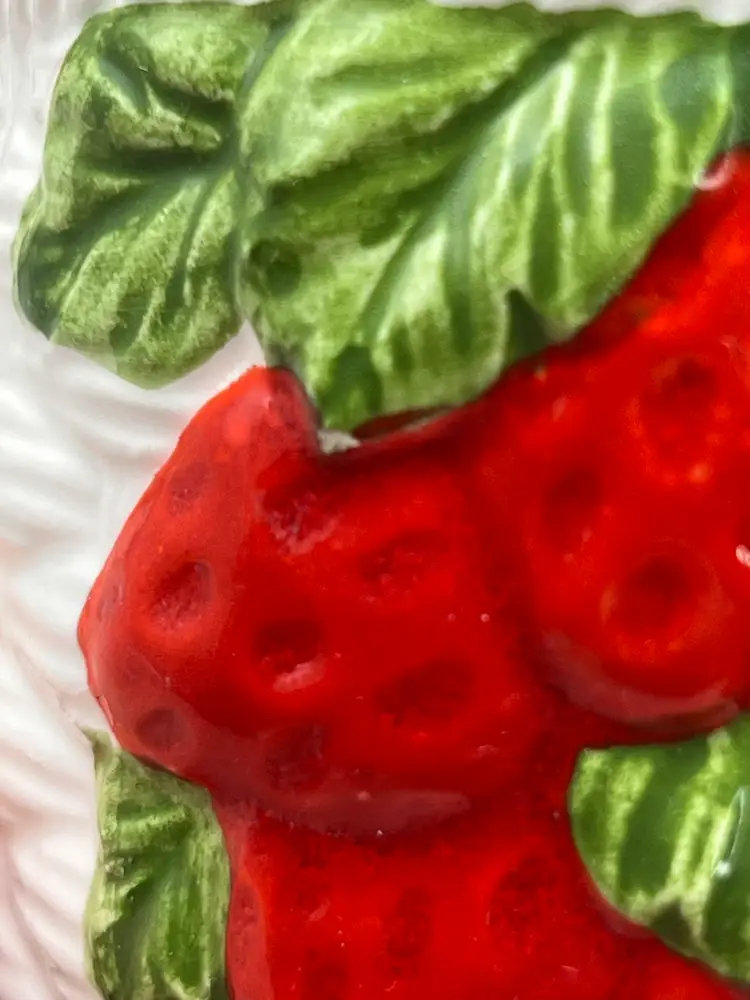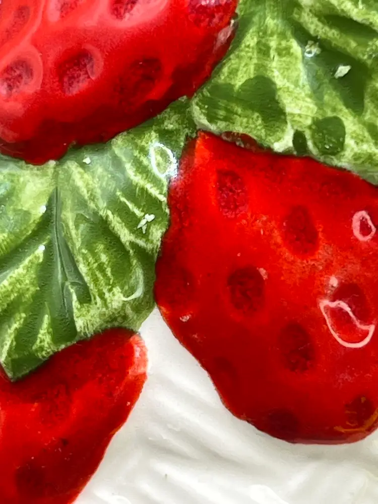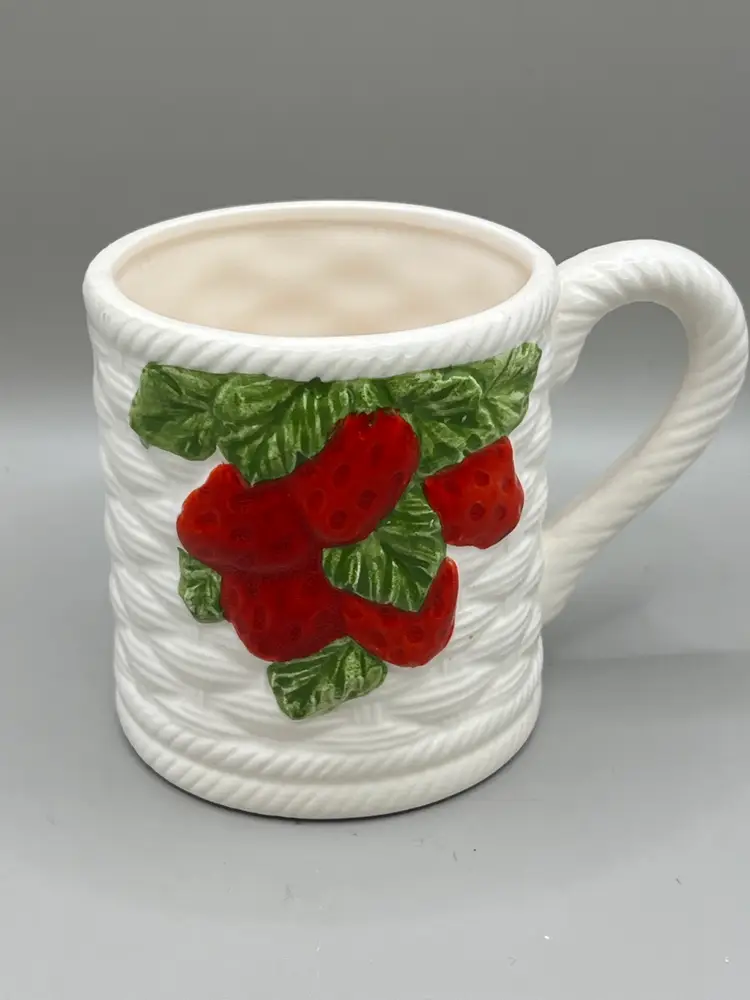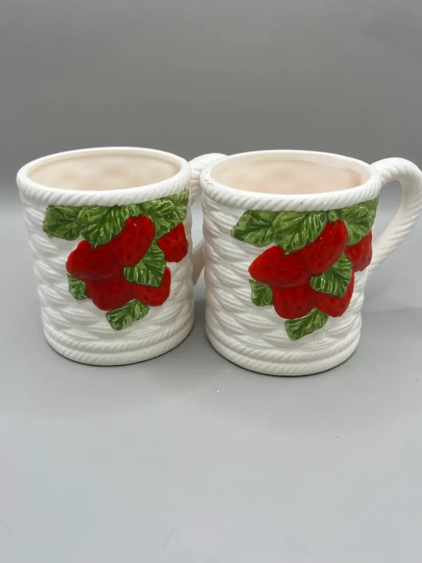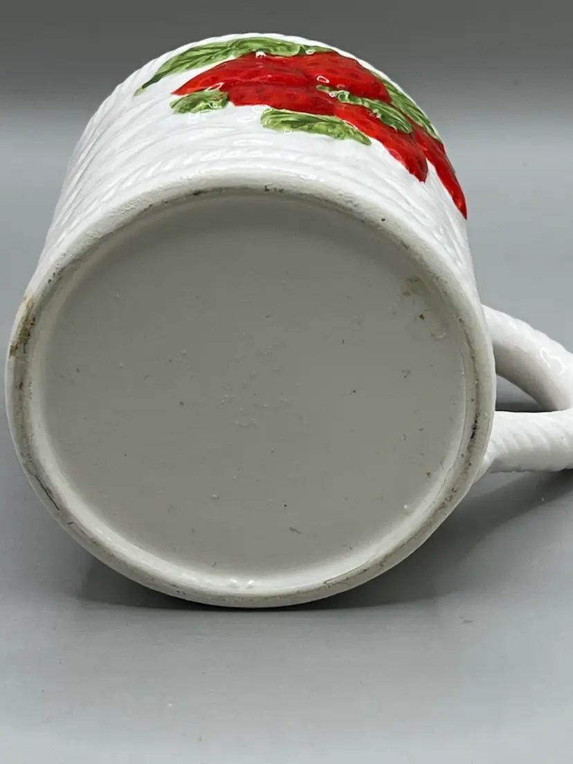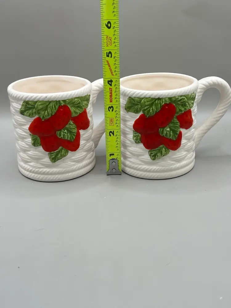 There are a few very small scuffs/spots of paint loss and one mug has a small chip on a leaf.