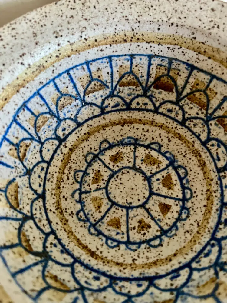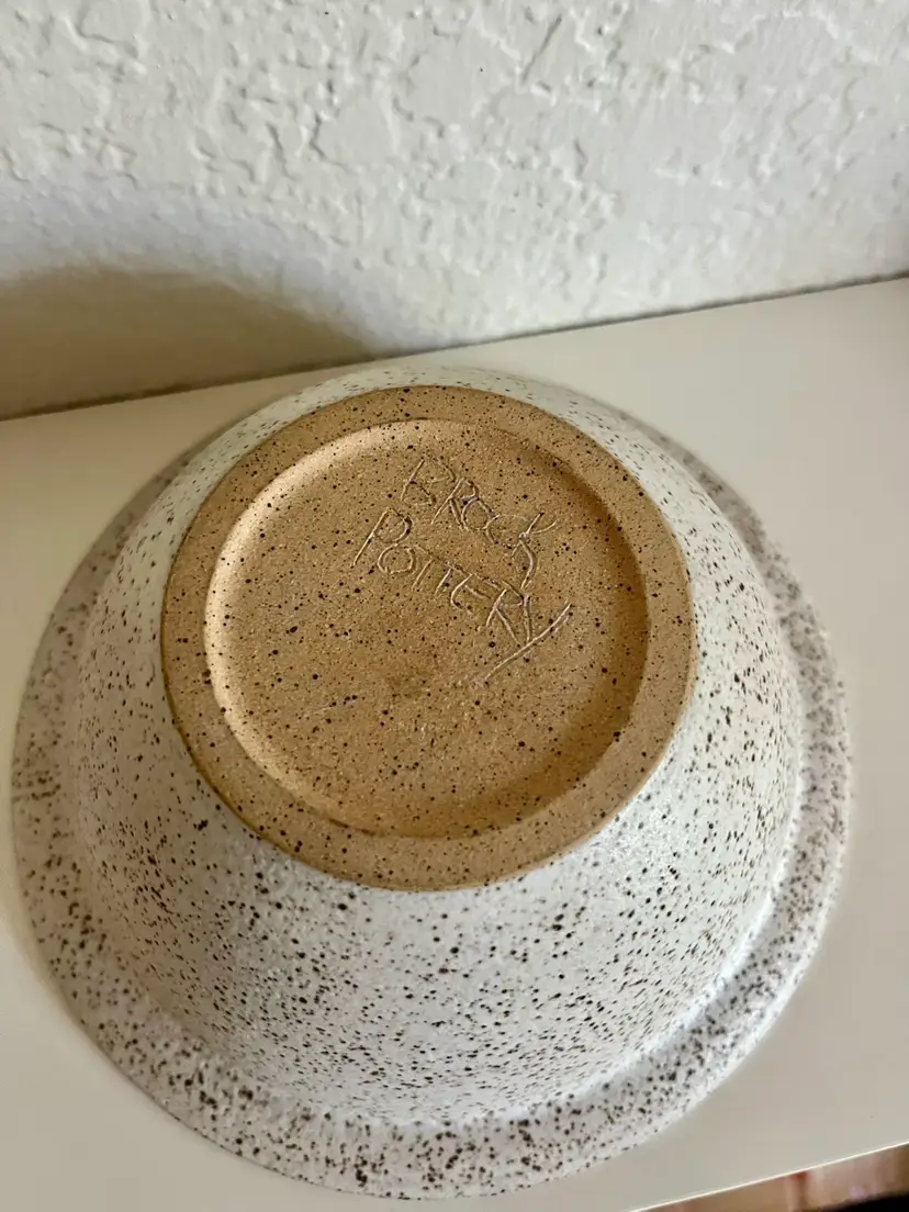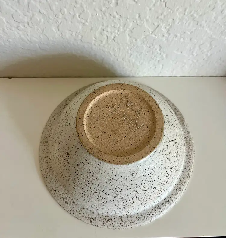 Gorgeous pottery bowl measuring 6 1/4” across the top and 2 1/2” height. Signed Brock Pottery. No chips or cracks