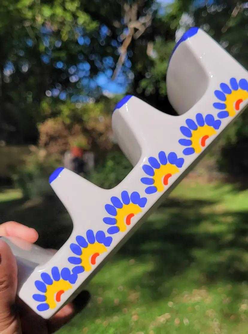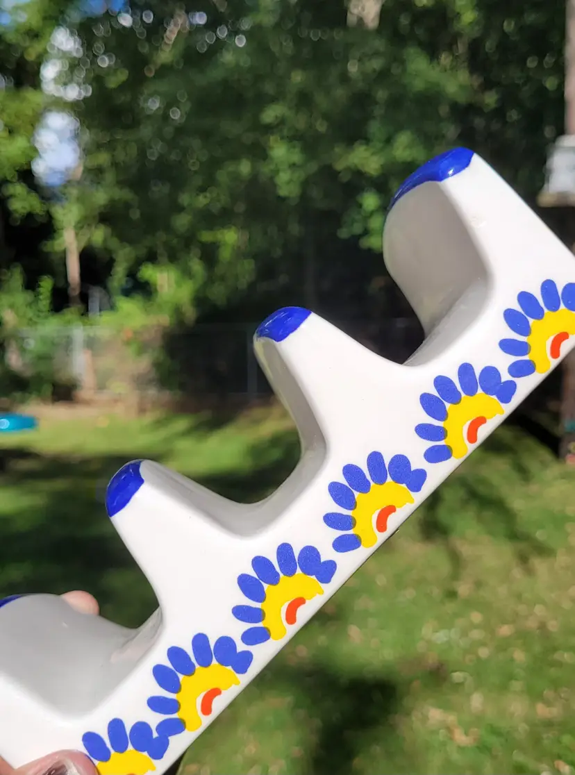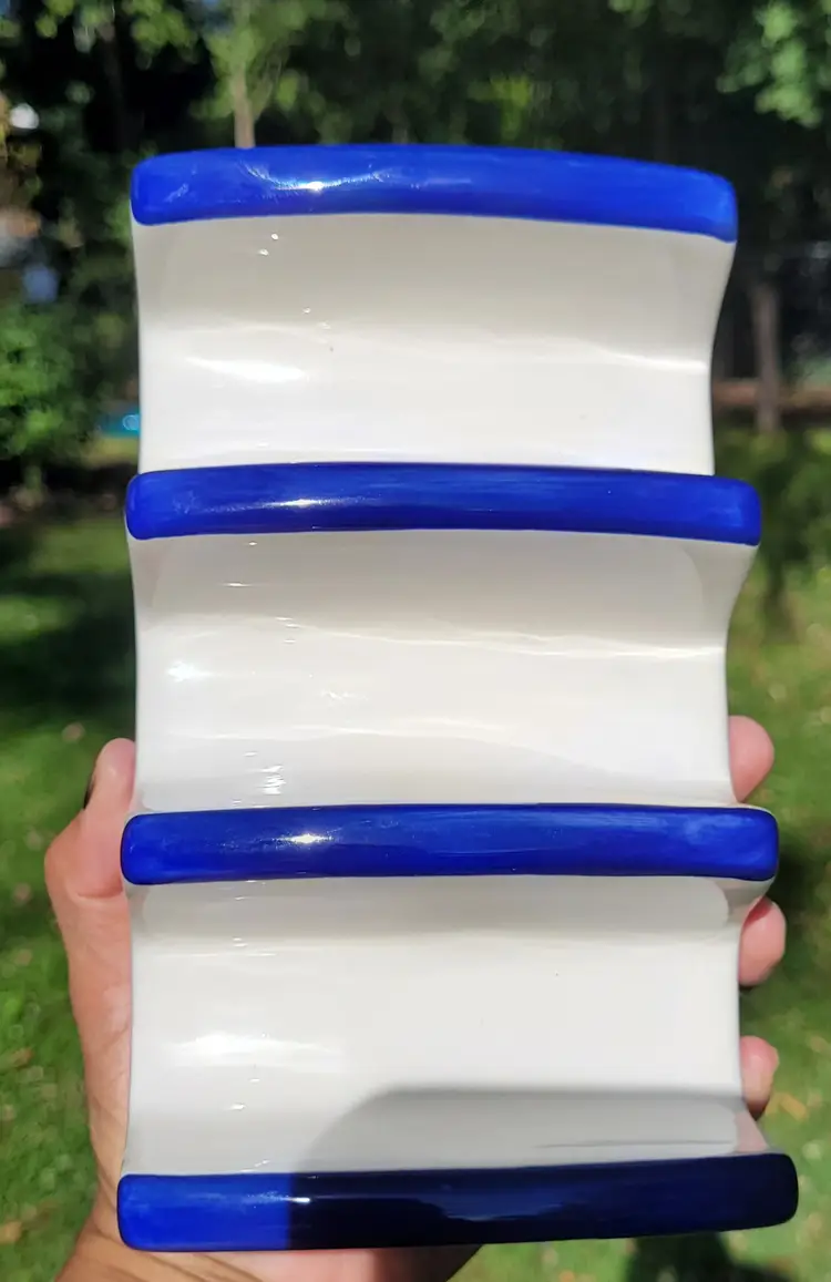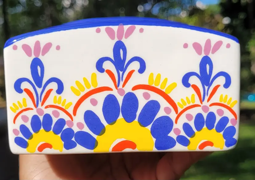 Add a touch of personality to your kitchen with this ceramic taco holder from Prima. The shiny finish and all-over multicolor pattern make it a fun addition to any kitchen. Hold 3 tacos at a time.
