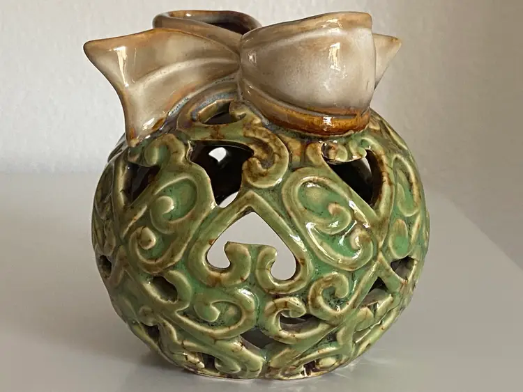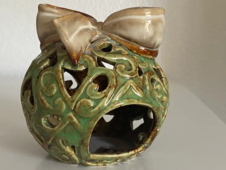 Elevate the ambiance of any room with this elegant ceramic tealight candle or incense holder. Its glossy green finish adds a touch of sophistication, complementing a variety of decors. The round, medium-sized holder measures 4.5 inches in height, making it a perfect accessory for your living space or personal retreat. Crafted from high-quality ceramic, this unbranded holder is designed to cradle your tea light or incense stick securely, ensuring a warm and inviting glow. The sturdy 13 oz weight stabilizes the piece, preventing it from being easily knocked over. Whether you're looking to set a romantic mood or create a serene atmosphere, this candle holder is an ideal choice.