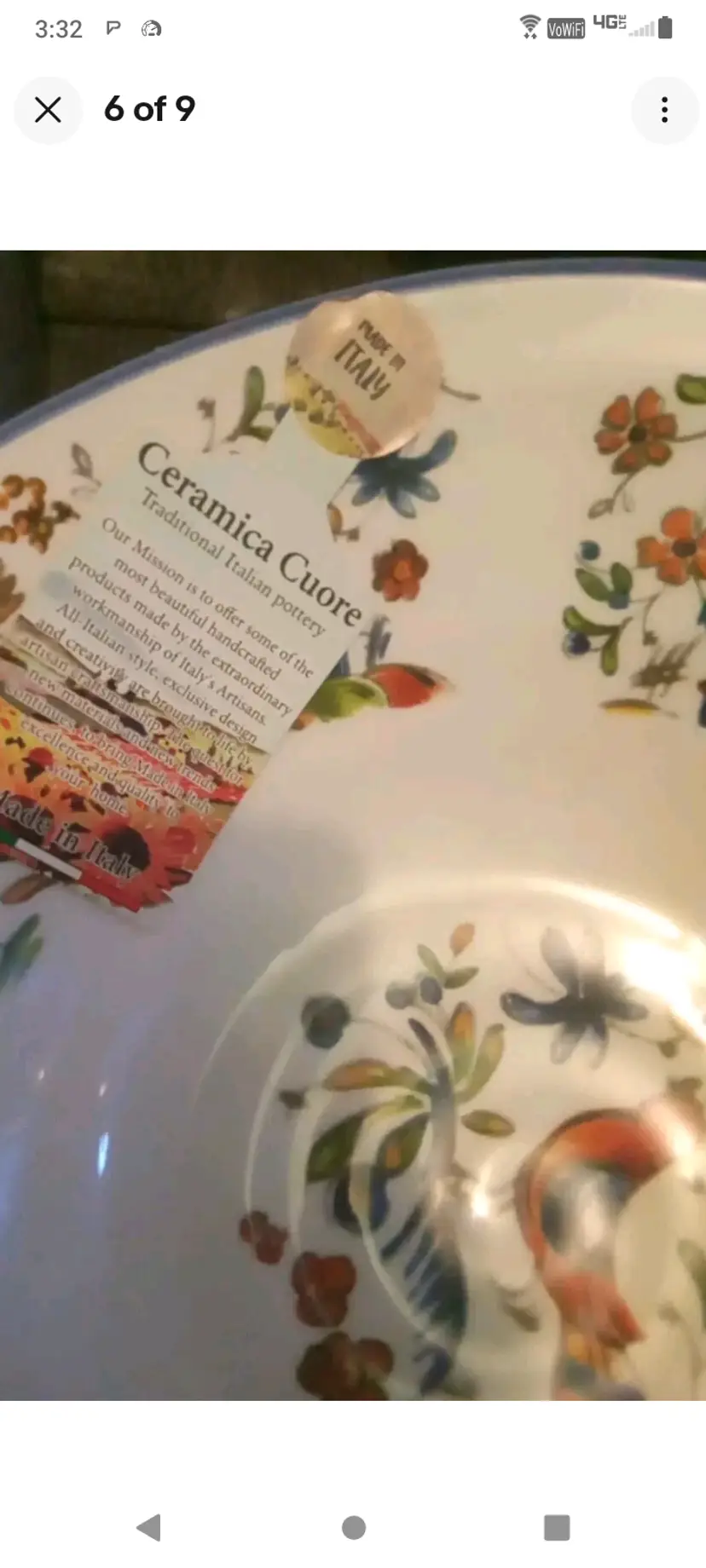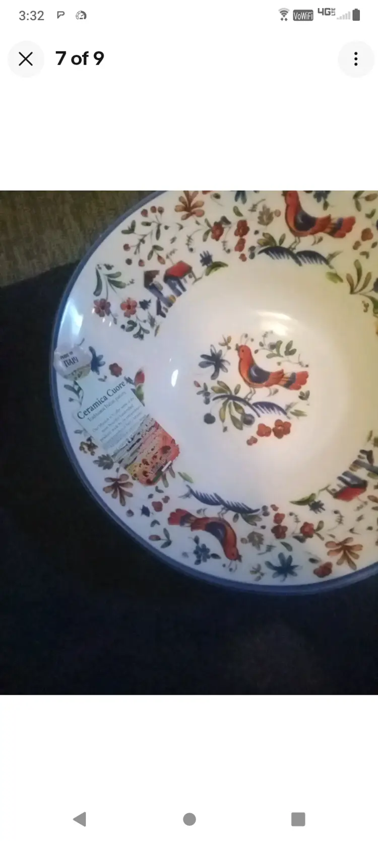beautiful serving bowl from Ceramica Cuore is the perfect addition to any kitchen. Made in Italy from high-quality Italian pottery, it features a glossy finish and a stunning pattern of birds, flowers, and farms. With a large size, it is ideal for serving a variety of dishes and is suitable for all occasions.