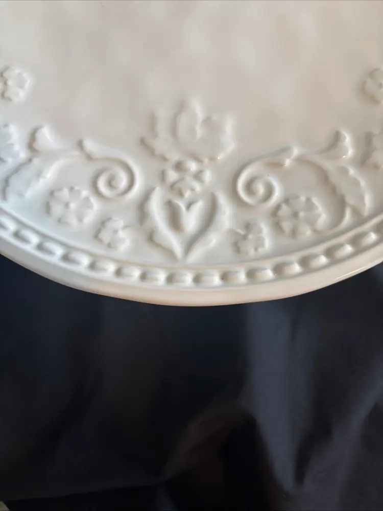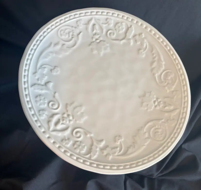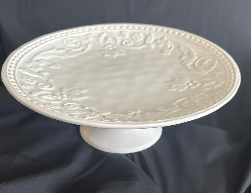 This beautiful 12.5”x5” embossed cake stand is perfect for special occasions, weddings, Sunday dinner, dinner parties, or just to use at home.