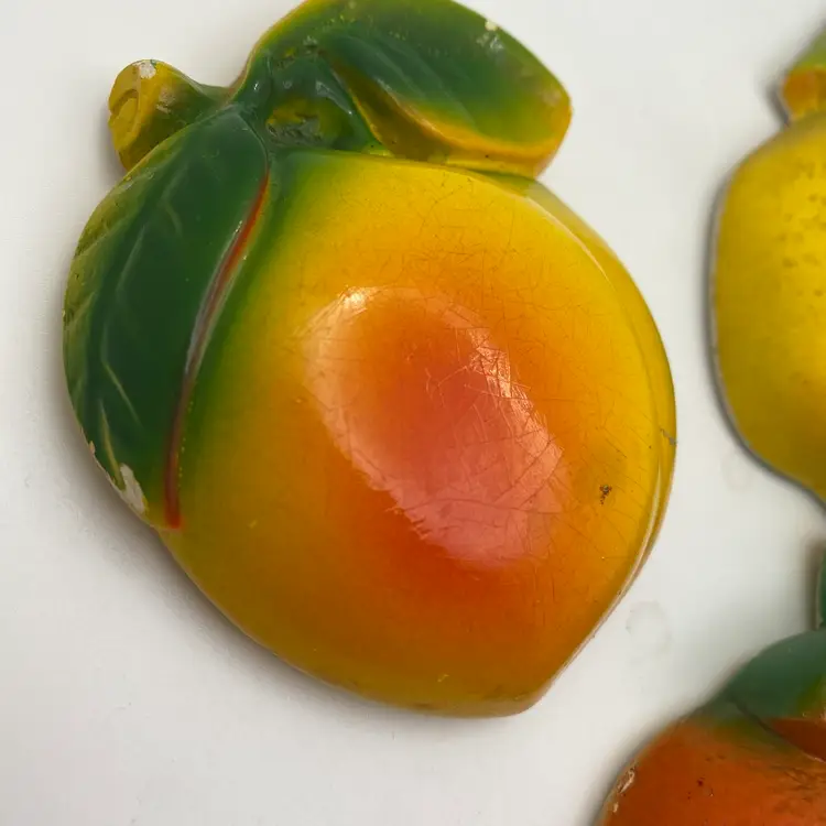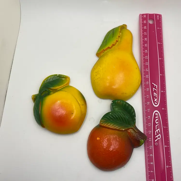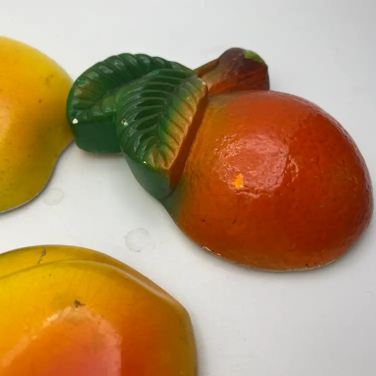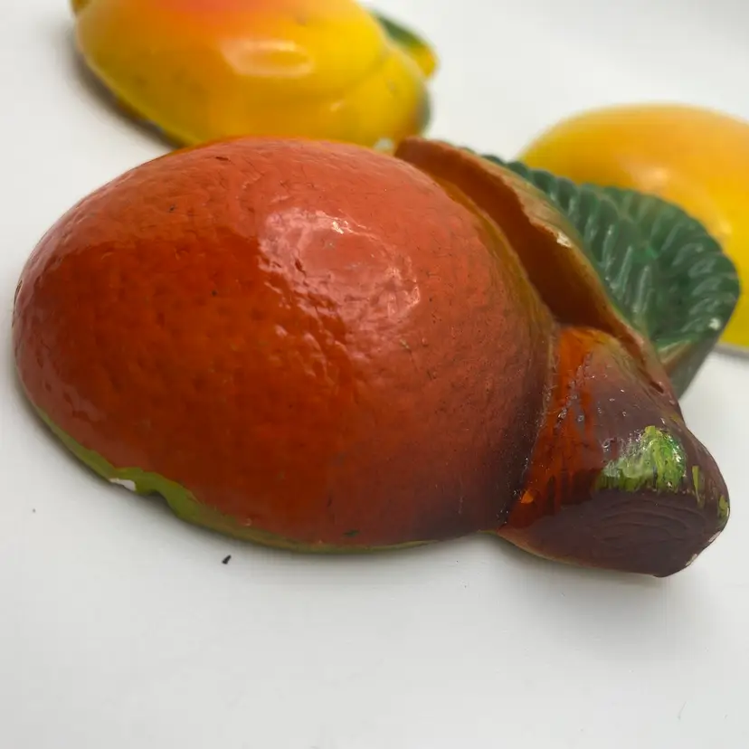 Chalk ware fruit set of 3 tiny chip of 2 slight paint wear on 2 see pics. Pretty good vintage condition