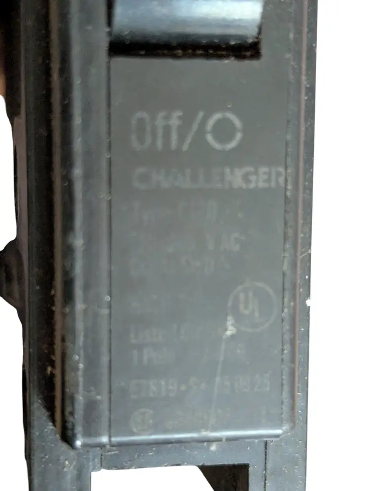 This is a previously owned Challenger circuit breaker. It is rated at 20 amps and 120/240 VAC. It is type C120, black, and is snap-in type. It is in excellent condition with no damage. aa9-032326