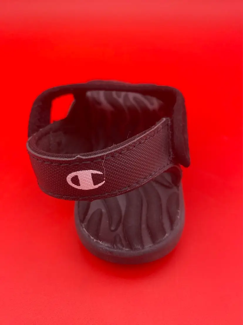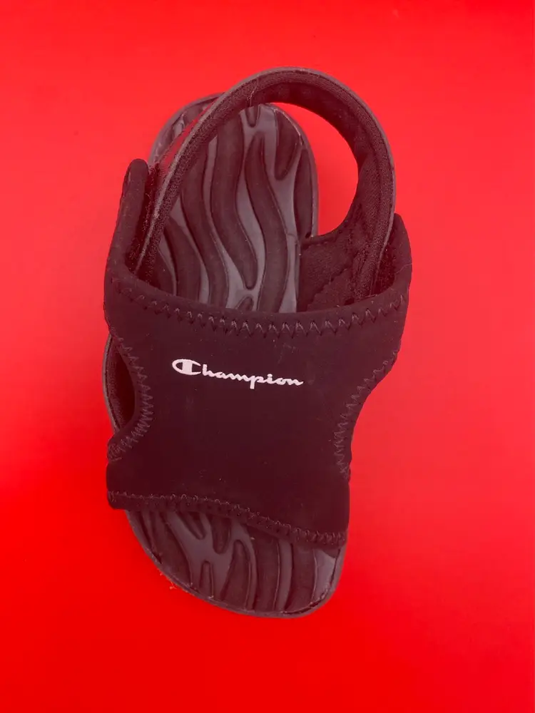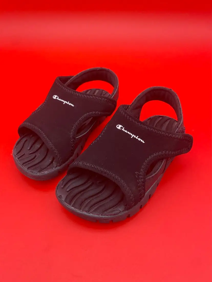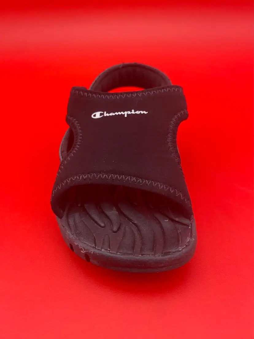 You are purchasing one pair of Toddler's Size 6.5 Black Skid Resistant Sandals by Champion. These Sandals are in overall great condition. Minimal signs of wear. No rips, holes or stains. Great Tread on the Bottoms.