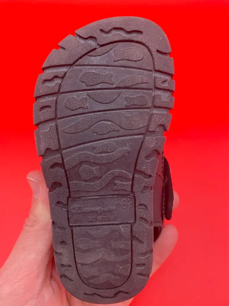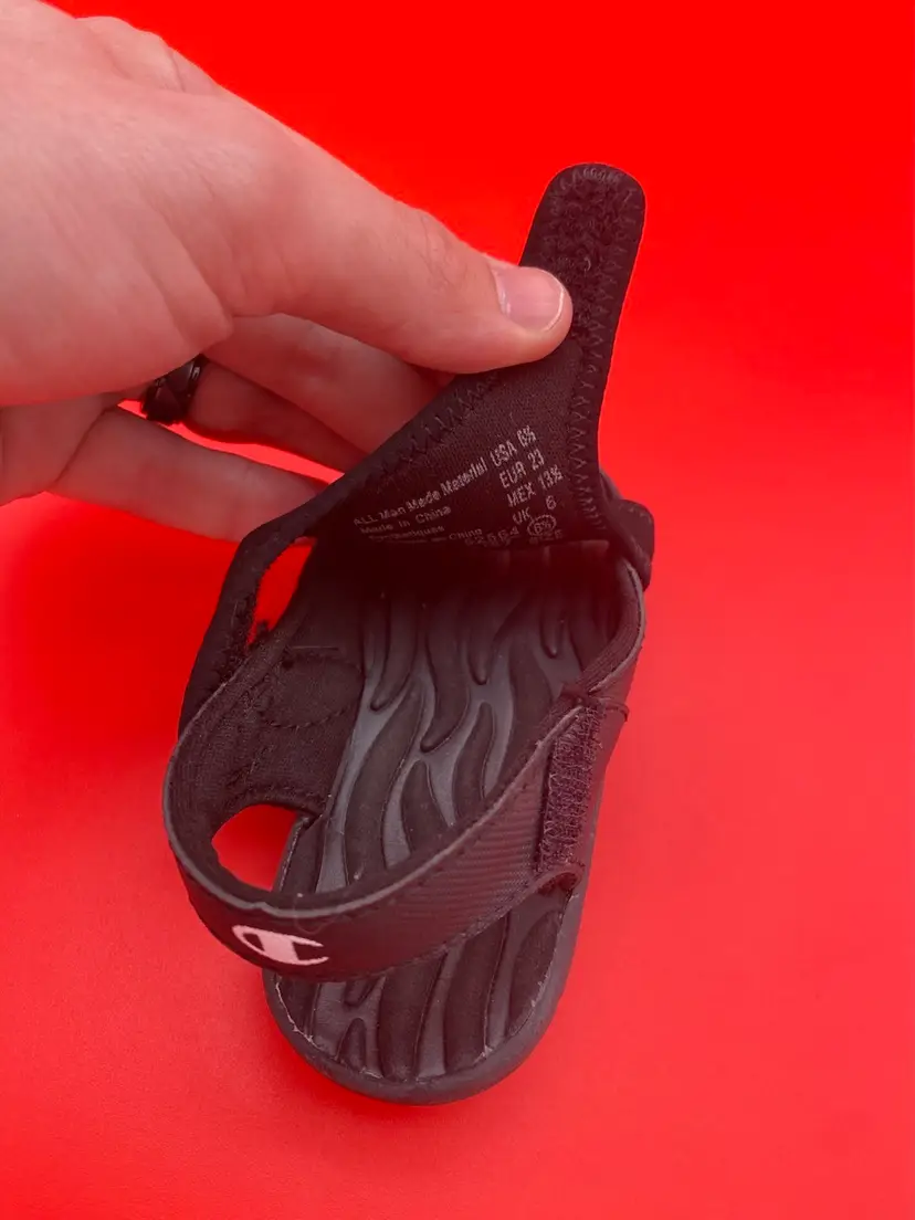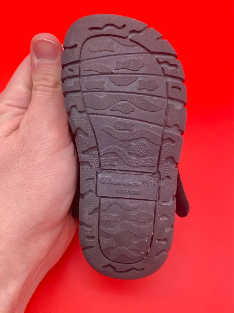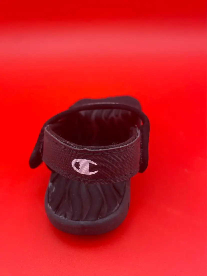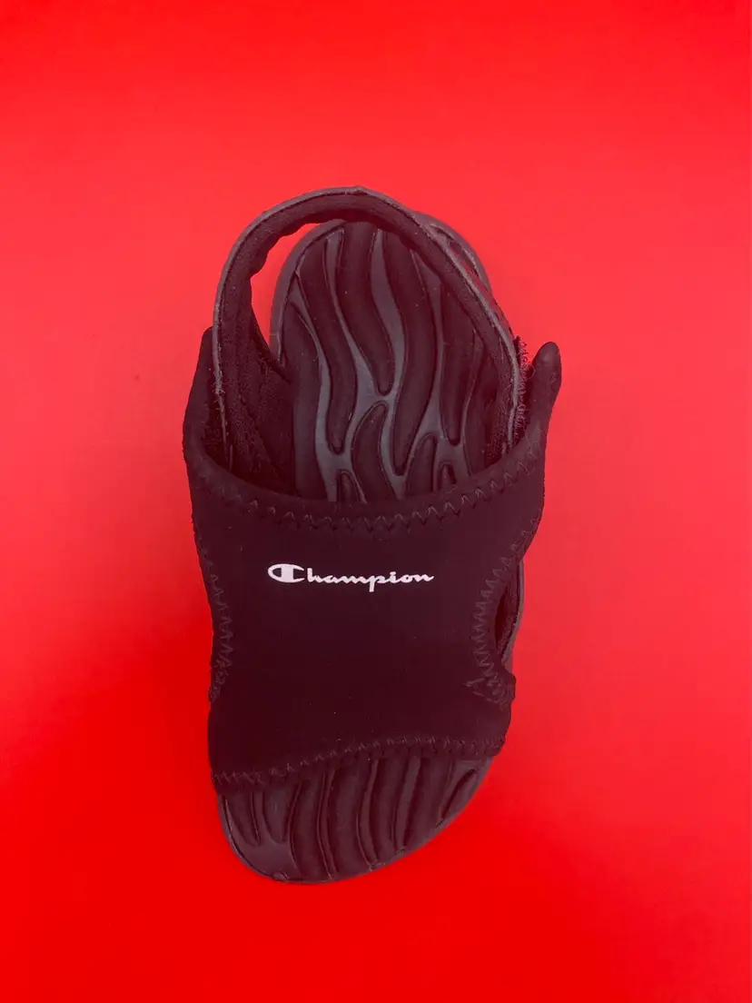You are purchasing one pair of Toddler's Size 6.5 Black Skid Resistant Sandals by Champion. These Sandals are in overall great condition. Minimal signs of wear. No rips, holes or stains. Great Tread on the Bottoms.