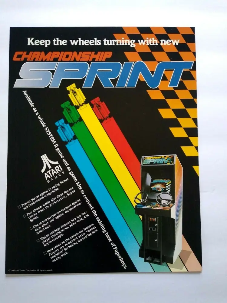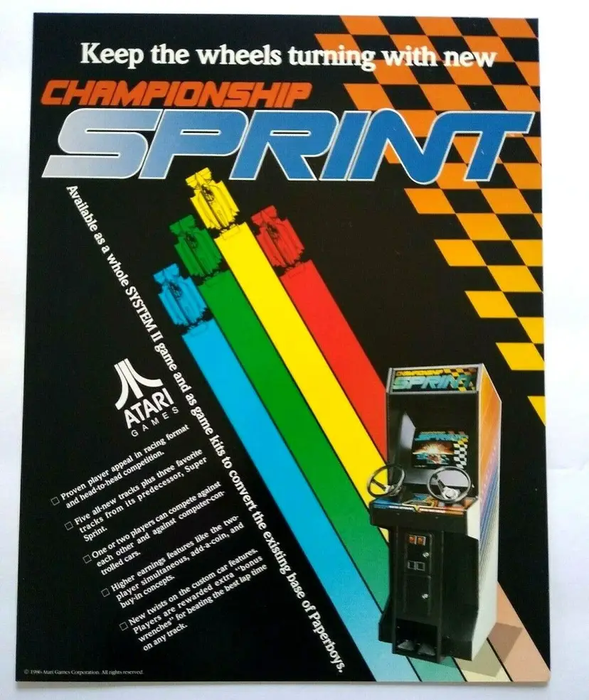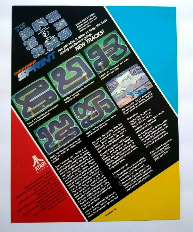 Arcade: Flyer Theme: Race Driving Modified Item: No Country/Region of Manufacture: United States Original/Reproduction: Original Year: 1986 Game Title: Championship Sprint Brand: Atari