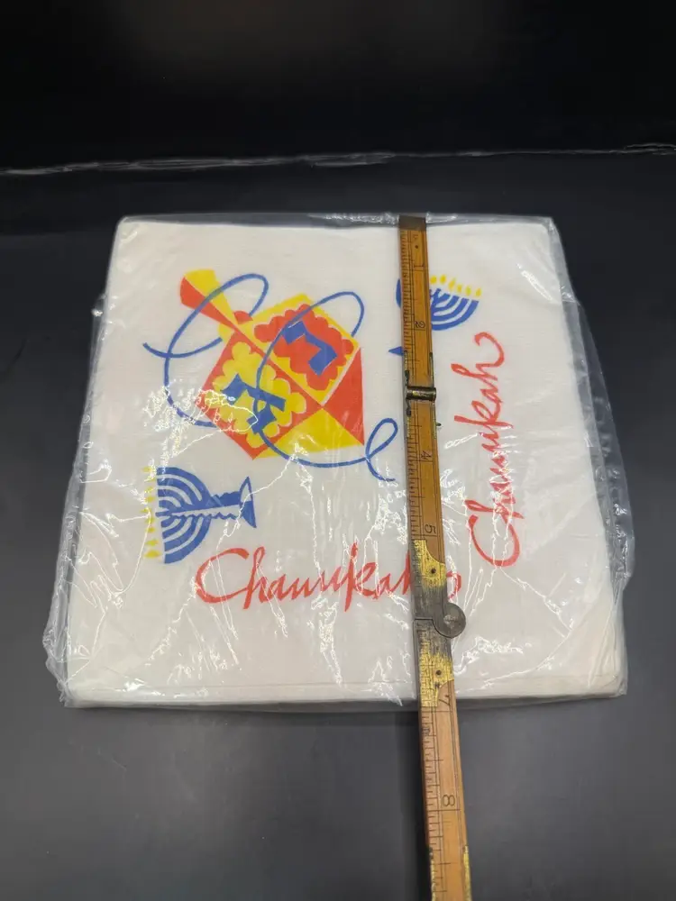 Chanukah New Old Stock MCM Graphic Dreidel Menorah USA Made Luncheon Napkins 7”