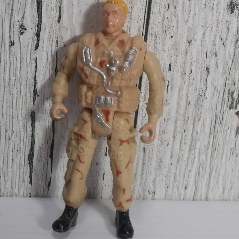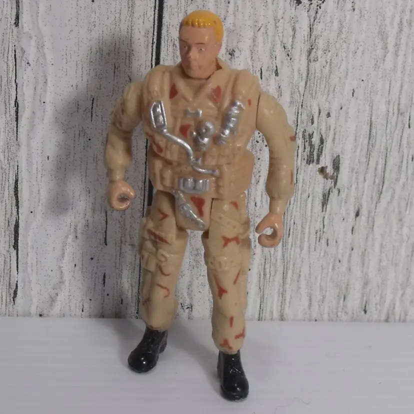 The Chap Mei Desert Camo Soldier Force Troop Leader 4 in Action Figure is a vintage collectible toy from The Corps franchise. This 4-inch plastic action figure features a multicolor design and is part of the Military & Adventure theme. It is an original licensed reproduction and does not transform. This action figure is perfect for young children aged 5-7 years who enjoy imaginative play with military-themed toys.