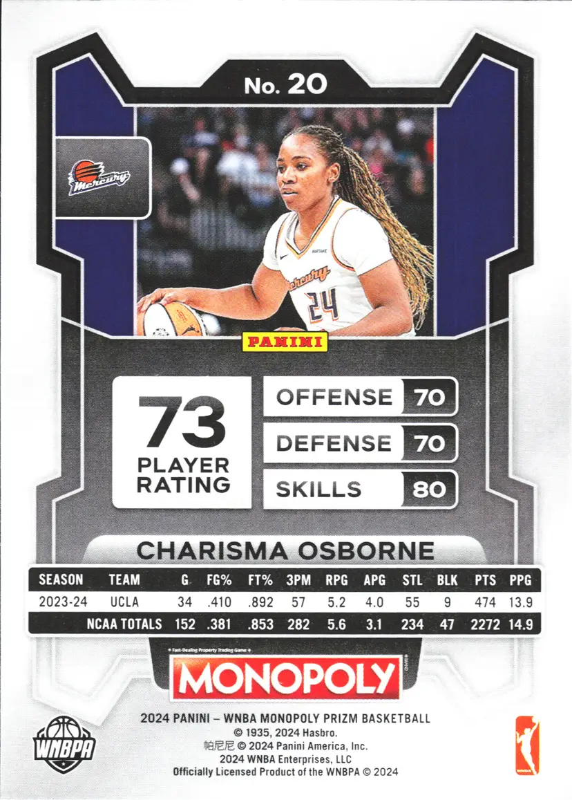 1st time buyer? Get $5 Off with code DISTRICT5 at checkout! Card as shown. All cards $20 and under ship PWE via lettertrackpro [https://www.letter-track.com/registerap.asp?AFID=8757] League: Women's National Basketball Association (WNBA), National Basketball Association (NBA) Sport: Basketball Type: Sports Trading Card Manufacturer: Panini Features: Rookie, Base Set Parallel/Variety: Prizm Autographed: No Material: Card Stock Year Manufactured: 2024 Original/Licensed Reprint: Original Event/Tournament: WNBA Finals Vintage: No Card Thickness: 20 Pt. Graded: No Team: Phoenix Mercury Country/Region of Manufacture: United States