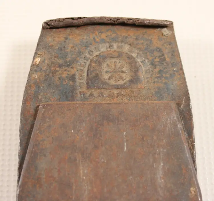 Rated three stars, "Very Rare", by Elliott. imprinted with "Charles Odell, Salem, Mass" on toe, Charles Odell was a hardware dealer in Salem, Mass, c. 1869-1876. Approximately 8" x 2 1/4", weighs 1.25 lb. Very short 1 3/4" Moulson double iron.