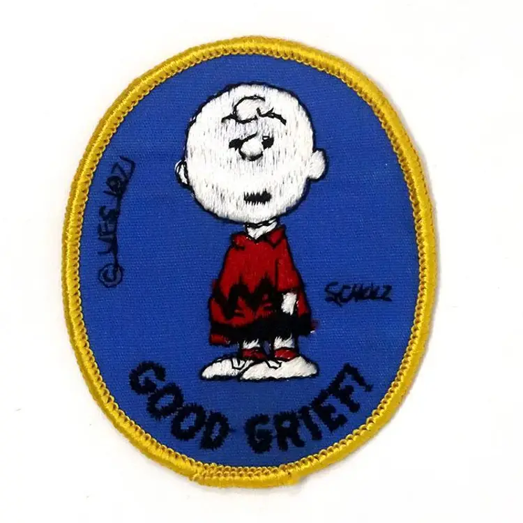 Show off your love for Charlie Brown with this 'Good Grief' embroidered patch. Featuring Charlie in his classic zigzag shirt, this patch is perfect for jackets, bags, or any Peanuts fan collection. Easy to sew or iron on, it's a fun way to add some Peanuts flair to your style. From Interstate Brands Company in 1971. In unused, like new condition.