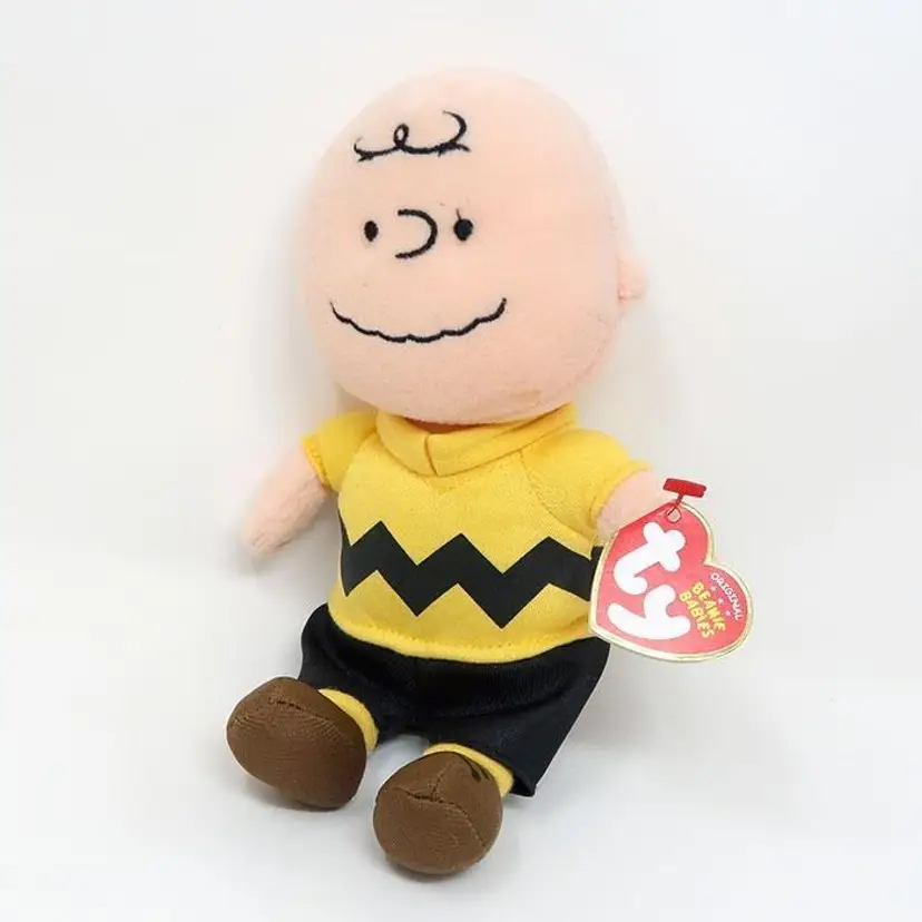 Cuddle up with this adorable Charlie Brown TY Beanie Baby plush. Featuring Charlie in his classic yellow zigzag shirt, this soft and huggable collectible is perfect for Peanuts fans of all ages. A charming addition to any collection.