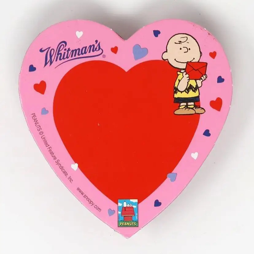 Celebrate love with this adorable Charlie Brown Valentine's Day Heart Box by Whitman's Chocolates. Featuring Charlie Brown holding a heart, this charming box is perfect for storing small treasures or refill with delicious chocolates for any Peanuts fan. Pair it up with a Whitman's figurine for the full nostalgia experience.
