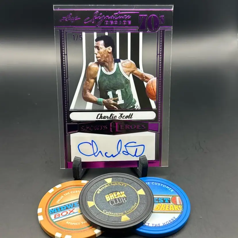 Charlie Scott Auto 1/5 Purple 70’s Sports Heroes 2024 Leaf Boston Celtics