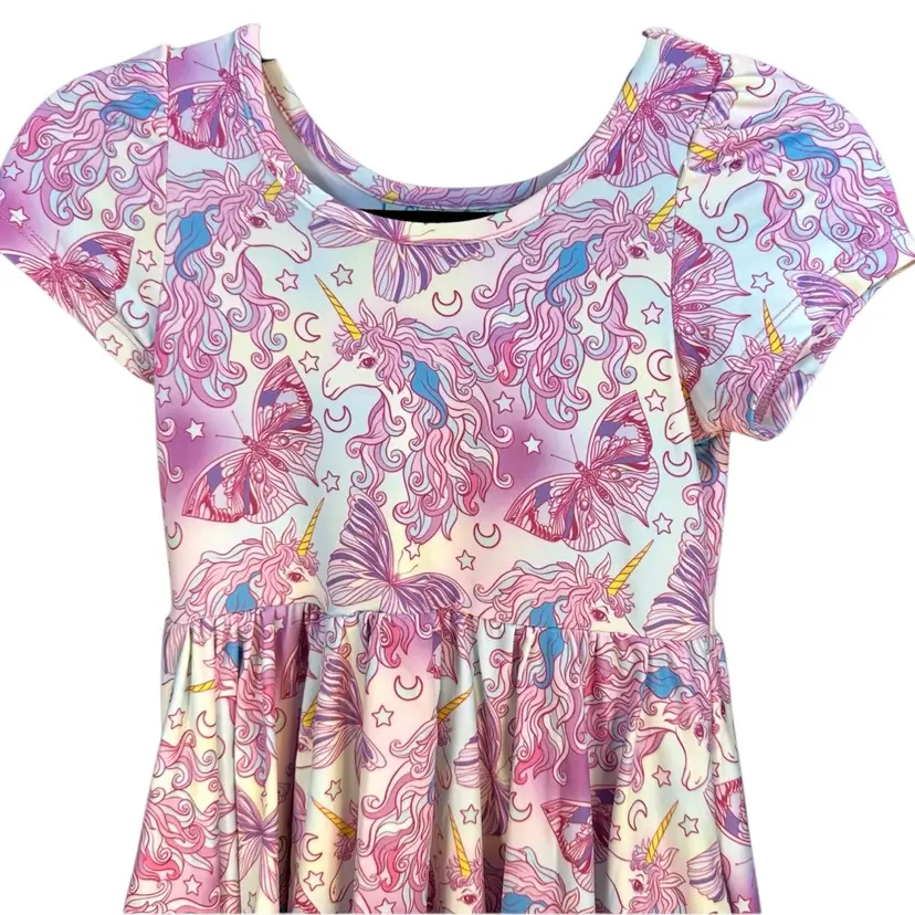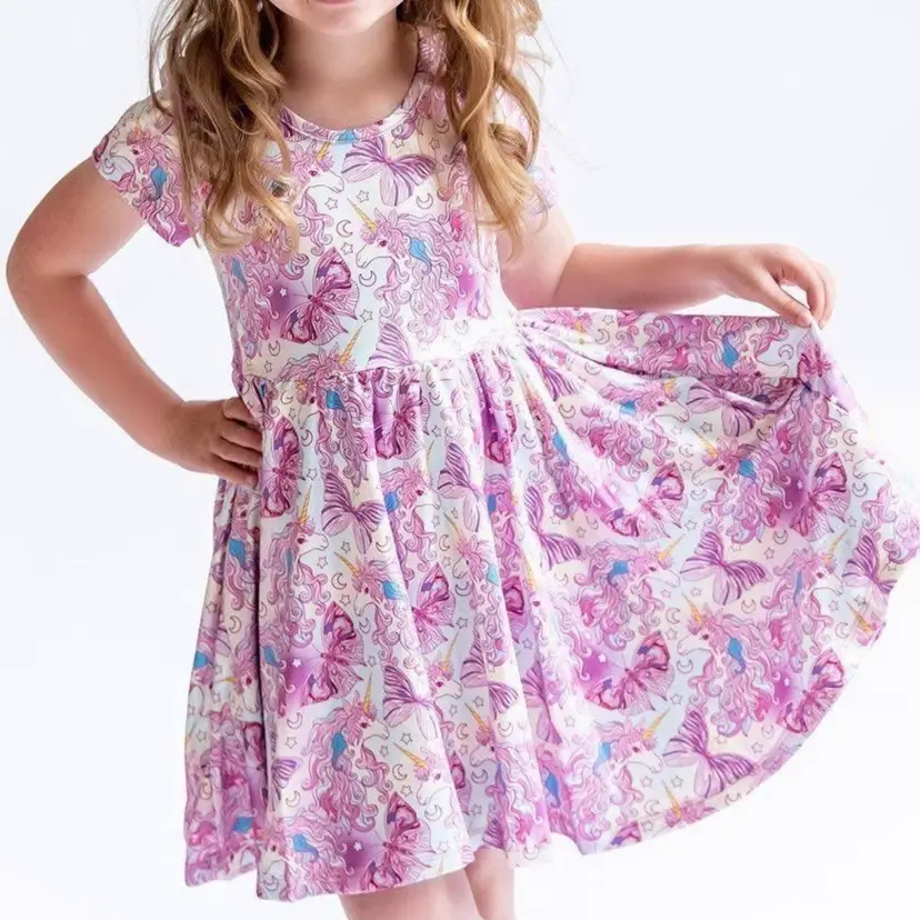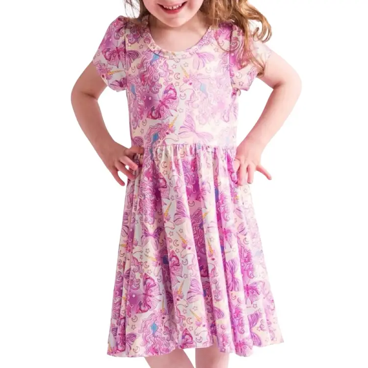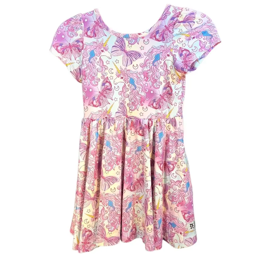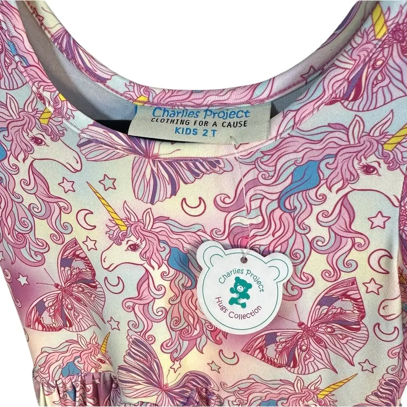 his twirl dress is super soft and so much fun to wear! Full circle skirt, perfect for twirling. With pockets! 95% polyester, 5% spandex. Size 2T.