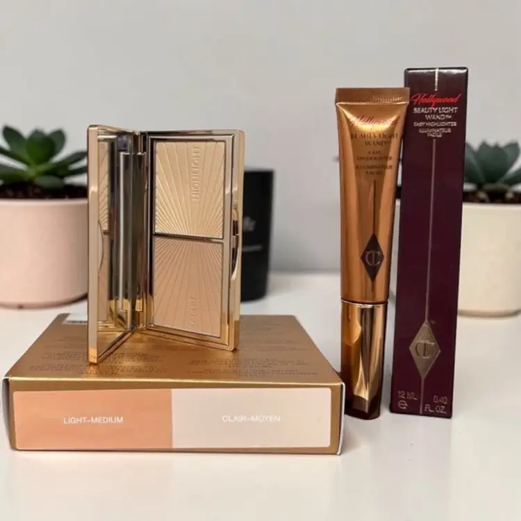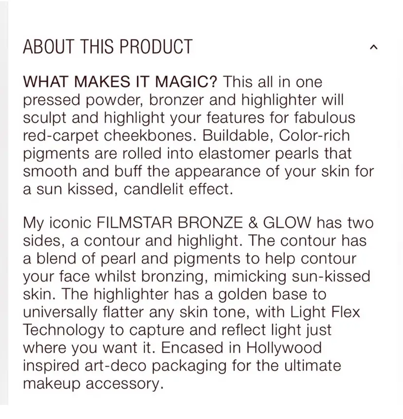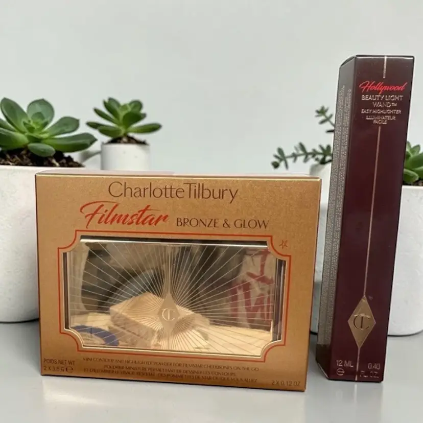 1x Filmstar Bronze & Glow Mini Palette in Light/Medium $29 1x Hollywood Beauty Light Wand Easy Highlighter in Spotlight $44